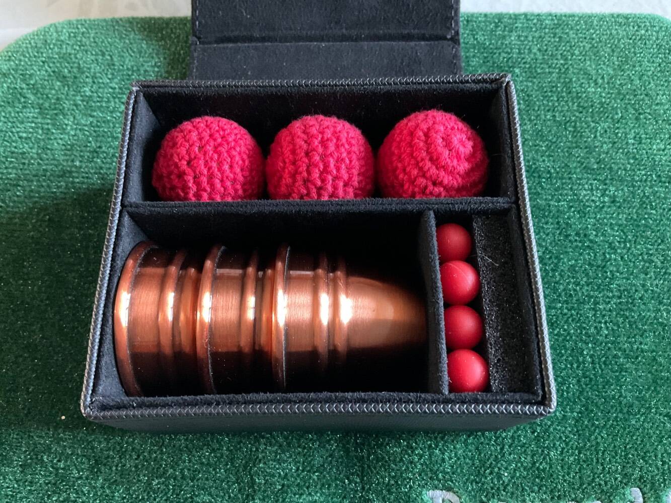 Achetées 69 €, je cède les mini cups and balls 45 € fdpi. Le set est quasi neuf et surtout en parfait état. Les mini cups & Balls de TCC sont fabriquées à partir de laiton de haute qualité spécialement sélectionné et d'une technologie de production de précision de qualité professionnelle. La surface est entièrement traitée pour donner l'apparence d'une finition bronze antique pour lui donner un aspect discret, tout en améliorant encore son raffinement.