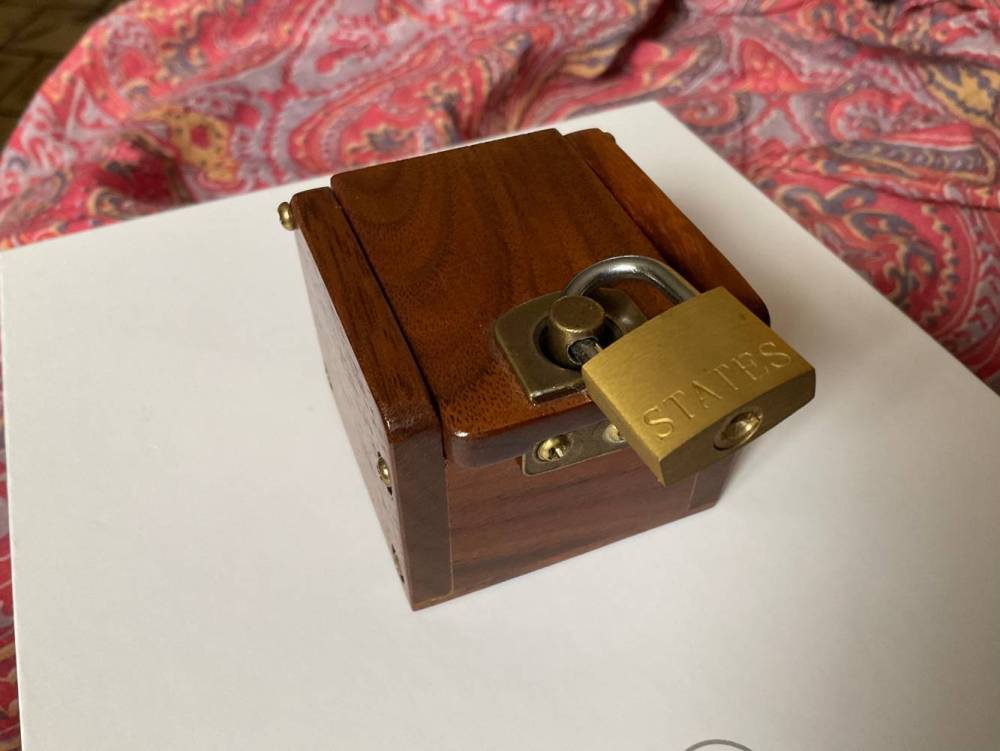 Ne passez surtout pas à côté de l'Antique Pill Box de Dave Powell ! Sa construction étonnante : ce n'est pas une boîte Lippincott ! Oubliez tout de suite ce que vous connaissez sur les boîtes où l'on retrouve la bague de la spectatrice, une pièce signée, ou tout autre objet pouvant entrer dedans. L'Antique Pill Box ne fonctionne pas comme une boîte Lippincott. Pas de trappes coulissantes ou pivotantes. Il n'a pas d'aimants. Elle fonctionne comme aucune autre box au Monde et elle est totalement examinable ! Impossible pour le spectateur de trouver l'accès secret. Une fois "verrouillée", la boîte ne peut pas être ouverte sans retirer le verrou. Idée de présentation : L'interprète pose un verre sur la table et emprunte une bague. L'anneau est placé dans un mouchoir et donné à un spectateur pour qu'il le tienne au-dessus du verre. Il peut réellement sentir l'anneau à travers le mouchoir. L'interprète retire une petite boîte en bois verrouillée et la met en évidence. Le spectateur est invité à déposer la bague dans le verre. Le spectateur lâche l'anneau qui tinte dans le verre. Le mouchoir est enlevé, la bague a disparu ! Le spectateur déverrouille lui-même la boîte, et découvre sa bague à l'intérieur ! La boîte est neuve et faisait partie de ma collection de beaux objet. Mais comme vous avez pu le remarquer, je commence à déstocker. Cette magnifique et hyper ingénieuse boîte est maintenant impossible à trouver auprès de Dave Powell. Je la vends 225 €, frais de port compris.