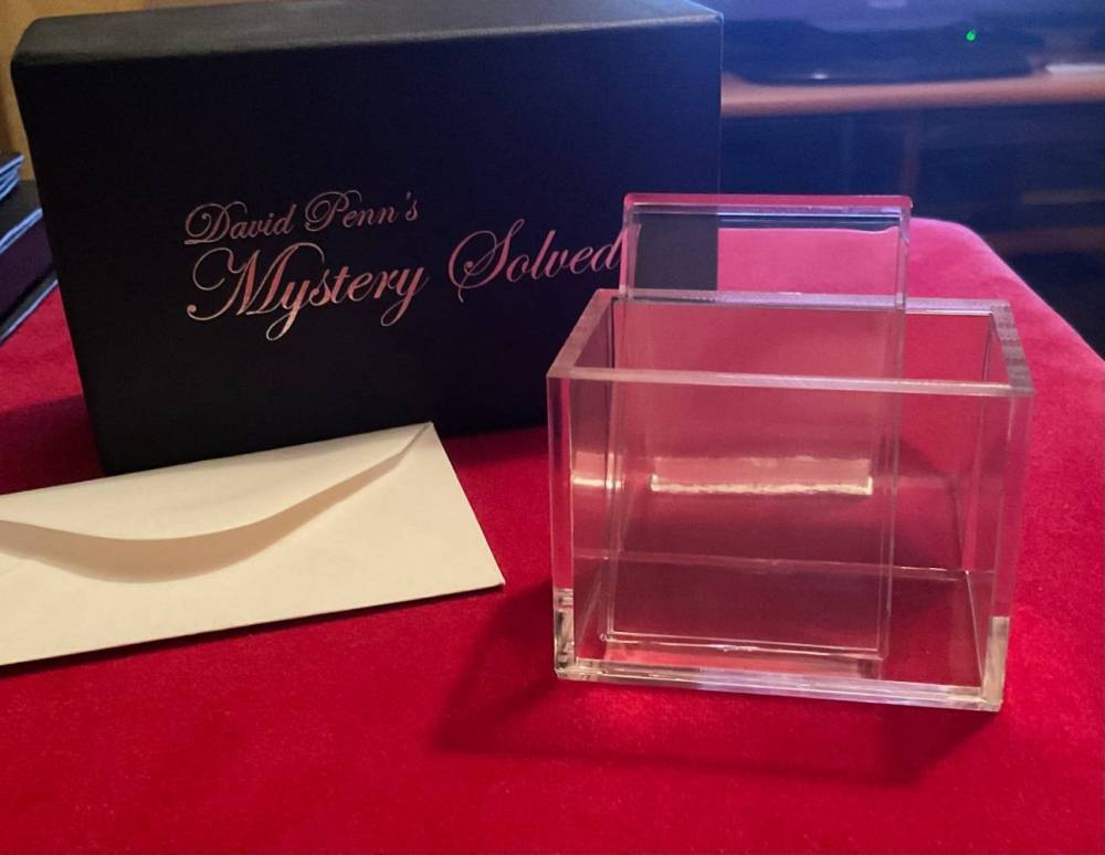 Je vends ma David Penn's Mystery Solved. Super effet très pratique et au reset instantané, de la carte signée à la boîte. Vendu 70 € environ, je la vends 35 € fdpi. Comme toujours, la boîte est en parfaite condition. Aucunes rayures, tout est complet avec des gimmicks en plus pour créer d'autres effets avec des billets, des prédictions, ... Comme sur la photo, vous pourrez laisser la boîte "vide" sur la table, l'illusion d'optique est parfaite.