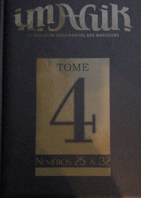 50€ FDPI LE TOME 4 ! Imagik est un trimestriel de magie français mythique qui a été publié entre 1993 et 2002. En tout 37 numéros de luxe sont parus, plus 3 spéciaux. Cette revue unique se distingue par la qualité de ses articles tant historiques que techniques, l’originalité de ses interviews, ses schémas réalisés spécialement, ses pages couleur. Dans chaque numéro, un foisonnement de sujets tournés vers la pratique tous azimuts de l’art magique : close-up, cartomagie, mentalisme, histoire, jeu-triche, interviews… Avec le temps, Imagik est devenu une revue culte dont il est régulièrement fait mention dans les forums. Une chance unique de vous procurer les numéros d’Imagik à bon compte dans une version reliée qui trônera dignement dans votre bibliothèque. Tout magicien digne de ce nom se doit de la posséder ! Attention tirage limité à 500 exemplaires numérotés. Dans ce tome 4 : les numéros de 25 à 32. 384 pages pour le même prix ! « Le change de billets de banque » de Jean Faré, « Hors de ce monde version courte » d’Alex Elmsley, « Le billet sandwich » de Nourdine, « La Magie des chouchous » de Christian Girard, « La magie et le droit d’auteur » de Florise Garac, « Le calendrier prophétique » de Daniel Rhod, « Disparition totale au bracelet-montre » de Joshua Jay, « La malle des Indes transparente » de Philippe Saint-Laurent sont des exemples de la « qualité dans la diversité » du matériel publié par Imagik. Ces routines citées sont toutes dans ce volume. Voici un survol du contenu richissime de ce tome 4 : 17 routines de Cartes 14 routines de Close-up 11 techniques magiques 9 enquêtes 8 routines de Mentalisme 8 articles sur le Patrimoine magique 7 interviews 5 articles de Jeu/tricherie 5 routines de scène/cabaret 3 routines de Bizarre-magick 3 articles théoriques et aussi la revue de presse, les nouveautés du marché, l’anglais magique, etc. Chaque nouveau numéro d’Imagik était un petit événement ! Important : Pour cette édition de prestige, de nombreuses photos qui étaient en noir et blanc au moment de la parution originale ont été imprimées en couleur.