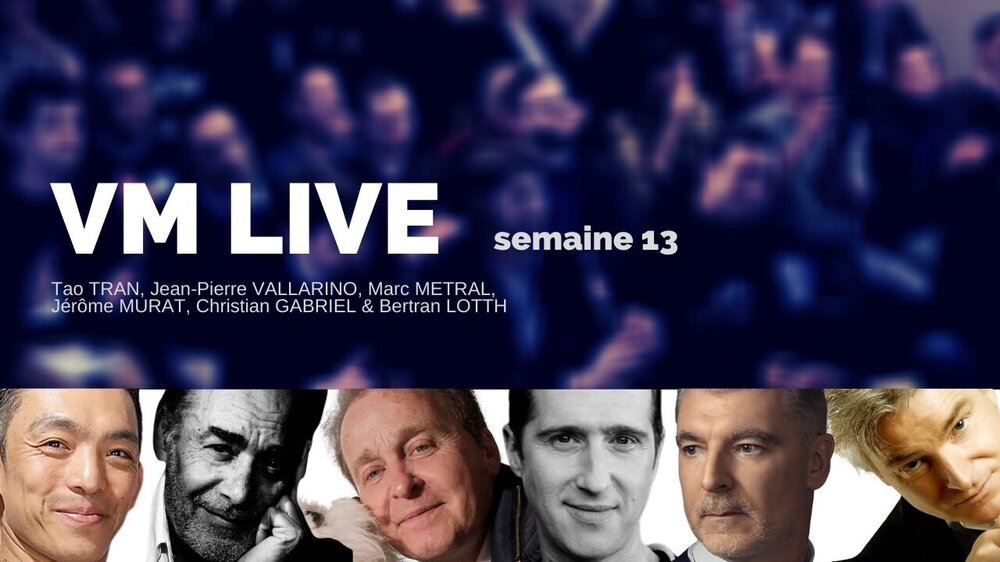 Nous continuons les directs des VM Live OFFERTS à tous les jours à 14h ! Voici les invités de cette 13e semaine : Tao TRAN lundi 15 juin Jean-Pierre VALLARINO mardi 16 juin Marc METRAL mercredi 17 juin Apéro Magique #12 jeudi 18 juin à 18h Jérôme MURAT vendredi 19 juin @Christian GABRIEL samedi 20 juin Bertran LOTTH dimanche 21 juin à 20h30 Rejoignez-nous en direct tous les jours ici ! La liste des 1 700 sujets abordés dans les VM Live est disponible ici ! Pour découvrir tous les autres avantages, clique ici !