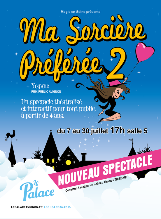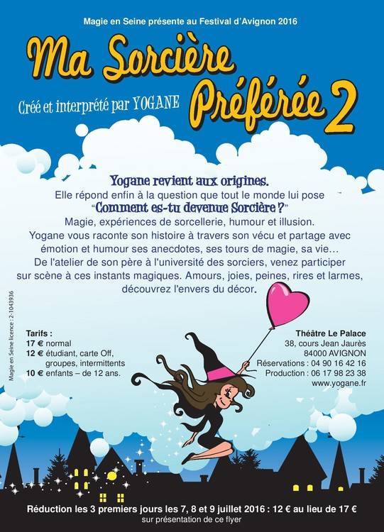 Nouveau spectacle présenté à Avignon 2016 ! Je vous en parle d'autant plus avec affection que j'en suis le coauteur et le metteur en scène ! Je serai Avignon du 1er au 20 juillet (minimum). Au plaisir de vous voir... avant, pendant et/ou après le spectacle. Faites-moi signe pour aller boire un coup ou manger une glace ! Un vrai spectacle de magie théâtralisé et interactif Du 7 au 30 juillet à 17h00 (1h) au Palace (Salle 5) Prix public à Avignon 2013, complet en 2014 et 2015 ! Après le succès triomphal du premier opus (complet pendant 3 ans à Avignon), Yogane revient aux origines. Elle répond enfin à la question que tout le monde lui pose : « Comment es-tu devenue sorcière ? ». Un vrai spectacle théâtralisé et interactif avec magie, expériences de sorcellerie, humour et illusions pour les petits comme pour les grands. Yogane vous raconte son histoire à travers son vécu et partage avec émotion et humour ses anecdotes, ses tours de magie, sa vie… De l’atelier de son père à l’université des sorciers, venez participer sur scène à ses instants magiques. Amours, joies, peines, rires et larmes, découvrez l’envers du décor. http://www.virtualmagie.com/event/sorciere-preferee-2-de-yogane-festival-avignon-2016/ -