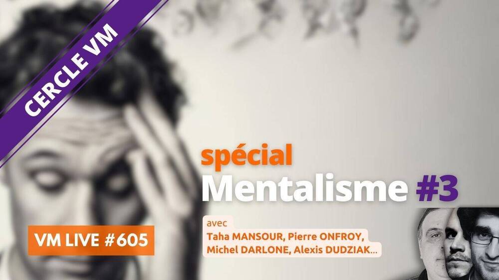 Ce jeudi soir nous avons un spécial Mentalisme #3 avec : @Taha MANSOUR @Pierre ONFROY (Féodor) @Alexis DUDZIAK @Michel DARLONE et d’autres Ca débute à 18h30 en public ! L’After débute une heure après pour les membre du Cercle VM. Accès aux directs PUBLICS & GRATUITS ici https://us02web.zoom.us/j/9322823734?pwd=b0Fua0NNTEZTcjhvUUNQOExtblpuZz09 Réunion Zoom : 9322823734 & mot de passe : VM Les explications des tours sont en Afters et réservés aux membres du Cercle VM. 300 invités et 800 Replays + accès aux Afters Le savoir et l’expérience de Max MAVEN, Gaëtan BLOOM, Michael AMMAR, Armando LUCERO, Peter TURNER, Yann FRISCH, Bébel, Antonio, Boris WILD… chez vous ! Accède à tous les Replays, Afters & 500€ de cadeaux Gaëtan BLOOM, Yannick CHRÉTIEN, Norbert FERRE, Ali NOUIRA, Arthur TIVOLI, Julien LOSA… font partie du Cercle VM. Et toi ? https://www.virtualmagie.com/cercle-vm Tous les VM Lives sont gratuits ! Accès aux directs PUBLICS & GRATUITS ici ! Réunion Zoom : 9322823734 & mot de passe : VM Les Afters sont réservés aux membres du Cercle VM. https://www.virtualmagie.com/cercle-vm/ 300 invités et 800 Replays + accès aux Afters Le savoir et l’expérience de Max MAVEN, Gaëtan BLOOM, Michael AMMAR, Armando LUCERO, Peter TURNER, Yann FRISCH, Bébel, Antonio, Boris WILD… chez vous ! Accède à tous les Replays, Afters & 500€ de cadeaux Gaëtan BLOOM, Yannick CHRÉTIEN, Norbert FERRE, Ali NOUIRA, Arthur TIVOLI, Julien LOSA… font partie du Cercle VM. Et toi ? Rejoins la communauté ! https://www.virtualmagie.com/cercle-vm/