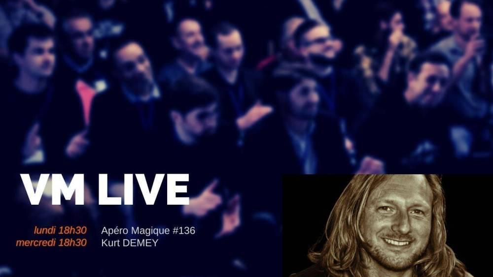En direct le mercredi 21 décembre 2022 à partir de 18h30 Dans son travail, Kurt DEMEY utilise les techniques du monde de l’illusion et du mentalisme comme une palette artistique. Les questions autour de ce que nous croyons ou voulons croire, sur l’existence ou l’absence du hasard, sont récurrentes. À travers un conte poétique, les représentations, installations et performances viennent mettre à nu notre désir de connaître le sens caché des choses. En 2016, Kurt Demey a remporté le premier prix de magie en Belgique et de mentalisme aux Pays-Bas. Accès aux directs PUBLICS & GRATUITS ici https://us02web.zoom.us/j/9322823734?pwd=b0Fua0NNTEZTcjhvUUNQOExtblpuZz09 Réunion Zoom : 9322823734 & mot de passe : VM Les After sont réservés aux membres du Cercle VM. 250 invités et 500 Replays + accès aux Afters https://www.virtualmagie.com/blog/cercle-vm/ Le savoir et l’expérience de Max MAVEN, Gaëtan BLOOM, Michael AMMAR, Armando LUCERO, Peter TURNER, Yann FRISCH, Bébel, Antonio, Boris WILD… chez vous ! Accède à tous les Replays, Afters & 500€ de cadeaux Vous pouvez désormais adhérer mensuellement ! Gaëtan BLOOM, Yannick CHRÉTIEN, Norbert FERRE, Ali NOUIRA, Arthur TIVOLI, Julien LOSA… font partie du Cercle VM. Et toi ? Rejoins la communauté ! https://www.virtualmagie.com/blog/cercle-vm/