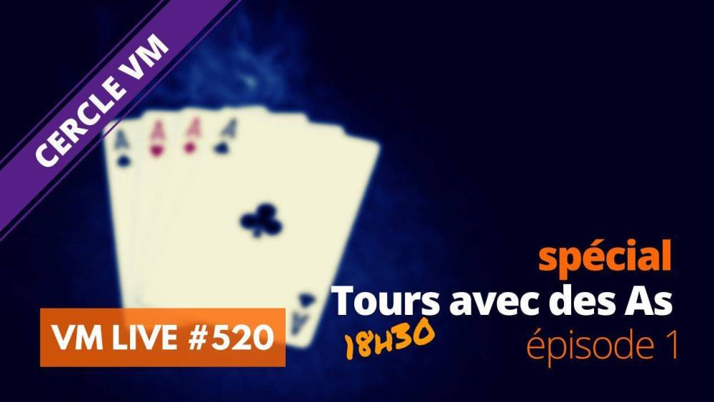 En direct le mercredi 14 décembre 2022 à partir de 18h30 Les tours avec des As sont légions ! Venez nous présenter vos préférés ! Accès aux directs PUBLICS & GRATUITS ici https://us02web.zoom.us/j/9322823734?pwd=b0Fua0NNTEZTcjhvUUNQOExtblpuZz09 Réunion Zoom : 9322823734 & mot de passe : VM Les After sont réservés aux membres du Cercle VM. 250 invités et 500 Replays + accès aux Afters Le savoir et l’expérience de Max MAVEN, Gaëtan BLOOM, Michael AMMAR, Armando LUCERO, Peter TURNER, Yann FRISCH, Bébel, Antonio, Boris WILD… chez vous ! https://www.virtualmagie.com/blog/cercle-vm/ Accède à tous les Replays, Afters & 500€ de cadeaux Vous pouvez désormais adhérer mensuellement ! Gaëtan BLOOM, Yannick CHRÉTIEN, Norbert FERRE, Ali NOUIRA, Arthur TIVOLI, Julien LOSA… font partie du Cercle VM. Et toi ? Rejoins la communauté ! https://www.virtualmagie.com/blog/cercle-vm/