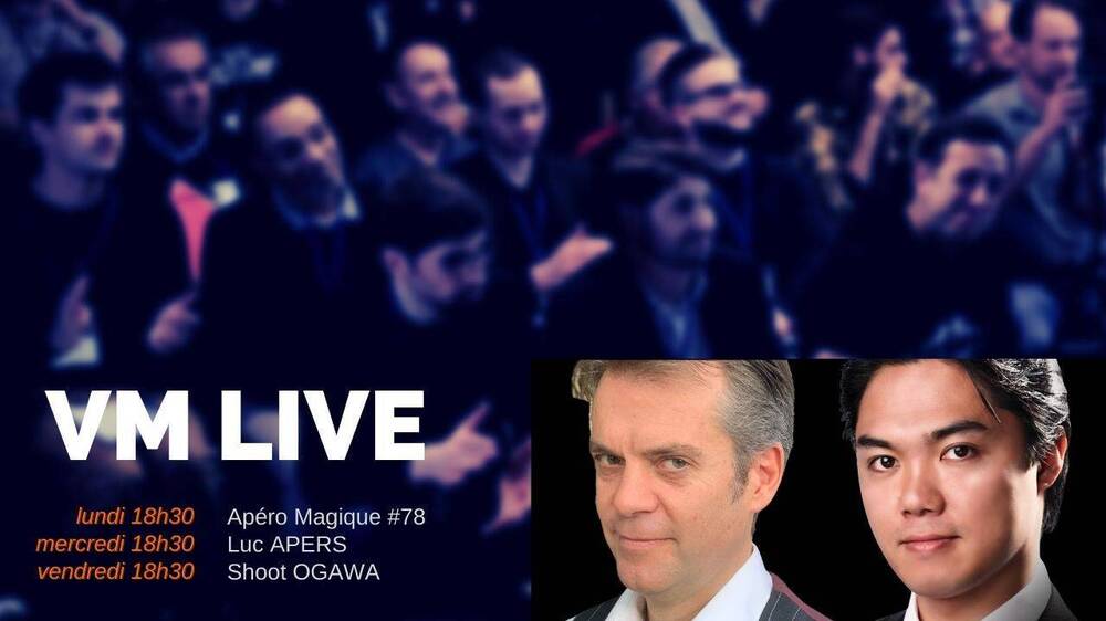 Voici le programme des VM Live de cette semaine : lundi 8 novembre à 18h30 pour l’Apéro Magique #78 @Philippe MOLINA sera avec nous pour présenter quelques tours ajoutés récemment à la boutique VM @Arthur TIVOLI pour sa chronique hebdomadaire, La Petite Histoire des Grands Magiciens. Il nous parlera de @Maxence VIRE. et bien sûr, plein de tours présentés par Pierre, Riad, Théo et les autres, suivi à 20h30 de l’After pour les explications et encore + de tours mercredi 10 à 18h30 avec le belge Luc APERS suivi ensuite de l’After pour toujours plus de tours et de bonne humeur vendredi 12 à 18h30 avec le japonais Shoot OGAWA suivi ensuite de l’After pour toujours plus de tours et de bonne humeur Accès aux directs OUVERTS à toute la communauté magique ici https://us02web.zoom.us/j/9322823734?pwd=b0Fua0NNTEZTcjhvUUNQOExtblpuZz09 Réunion Zoom : 9322823734 & mot de passe : VM L’After est réservée aux membres du Cercle VM. 210 invités, 7 000 sujets abordés et 1 000 heures de Replays + accès aux Afters Le savoir et l’expérience de Max MAVEN, Gaëtan BLOOM, Michael AMMAR, Armando LUCERO, Peter TURNER, Yann FRISCH, Bébel, Antonio, Boris WILD… chez vous ! Accède à tous les Replays, Afters & 250€ de cadeaux https://www.virtualmagie.com/cercle Vous pouvez désormais adhérer mensuellement ! Gaëtan BLOOM, Yannick CHRÉTIEN, Norbert FERRE, Ali NOUIRA, Francis TABARY, Arthur TIVOLI, Julien LOSA… font partie du Cercle VM. Et toi ? Rejoins la communauté https://www.virtualmagie.com/cercle