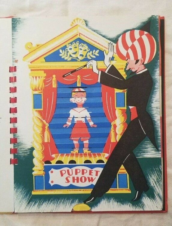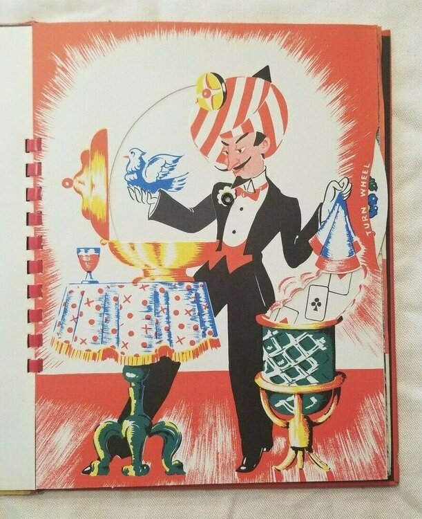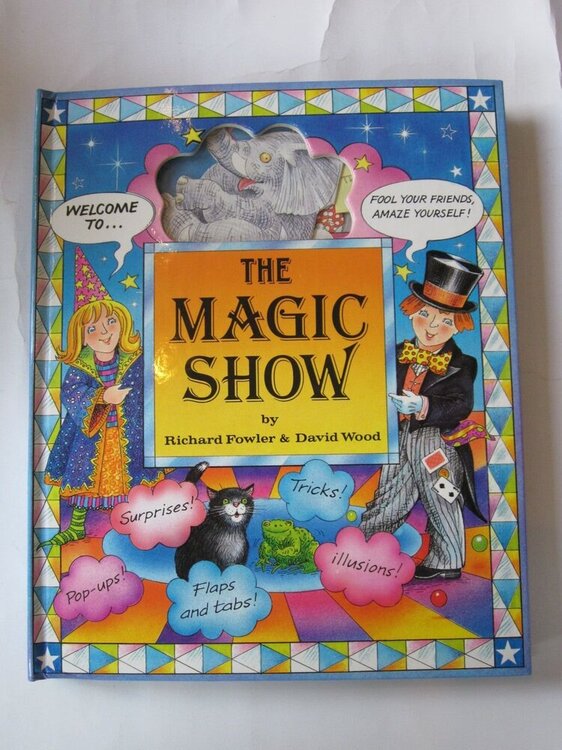 Le livre interactif Magic Show de Mark Setteducati fait toujours référence, car Mark a mis des années à le concevoir, notamment en s’appuyant sur ses cartes de vœux, elles-mêmes animées et interactives, qu’il envoyait (et envoie toujours !) chaque année à ses amis et connaissances, ou encore des jouets qu'il avait déjà conçus pour d'autres marques. J’encourage d’ailleurs tout le monde à se renseigner sur Mark Setteducati, c’est l’archétype du savant génial, cultivé et généreux, qui a inventé mille choses et connu mille vies : il a notamment été l’assistant de la célèbre artiste plasticienne franco-américaine Louise Bourgeois. Ci-dessous, une démonstration en continu de tous les effets de The Magic Show, présenté par Madison Hagler, un jeune magicien dont je vous recommande la chaine YouTube, où il présente (bien) de nombreux effets de Tenyo et autres effets mécaniques/optiques, de type Alan Warner ou Magic Wagon Concernant les livre pop-up de magie, il n'existe pas à ma connaissance de liste complète, car ils sont nombreux et anciens. Quelques-uns que je connais : 1942 : Peter Rabbit The Magician, Mel Richards : un vieil exemple de livre-objet magique, mais aussi l’un des plus malins : le nom de l’enfant/lecteur est astucieusement intégré à l’histoire, et il comprend des versions d'effets que je n'avais jamais vu avant (ni après). Pas un livre pop-up à proprement parler, les tours sont intégrés dans les pages et le "décor" de chaque histoire. 1944 : The Book of Magic, William Wiesner. Un mélange d’explications de tours avec de nombreuses animations à tirettes. 1949 : Le Petit Magicien Animé, Germaine Bouret / Georgeo. Contient une version assez unique des Buddah Papers (trop long à décrire ici, mais surprenant), des effets de changement de couleur lorsque le magicien articulé passe sa main devant une carte à jouer, ainsi qu’un effet amusant où une carte est choisie parmi un jeu de 32 se retrouve derrière un éventail tenu par l'assistante du magicien : * 1983 : Magic Trick, Ron Van Der Meer : un classique ! Incontournable, réédité plusieurs fois et en plusieurs langues, de nombreux magiciens ont dû commencer par ce livre offert par Tatie Anita à Noël (j’en fais partie). A mon sens, c'est l'ancêtre de The Magic Show : un vrai livre pop-up truffés d’idées, notamment un chapeau double-fond en pop-up, l'intégration maligne d’une boite au change en pop-up (avec le flap secret qui pivote en refermant le livre), une maison vide qui se remplit, etc. Quelques photos dans le lien ci-dessous : https://gramho.com/media/2380751935966727765 1973 : The Magic Word Book, Starring Marko The Magician , Joseph Mathieu : plutôt un livre humoristique sur le thème de la magie, mais joliment réalisé, et plein de caractère. 1995 : The Magic Show, Richard Fowler & David Wood. De belles idées, dont une femme (enfin, un garçon) scié en pop-up (avec le bruit de la scie et tout !), un éléphant qui disparaît et un bonneteau donc une molette cachée vous permet de déplacer la balle où vous le souhaitez, afin de faire perdre le spectateur à tous les coups… car il est important d’apprendre aux enfants des jeux frauduleux, dès leur plus jeune âge. 1998 : The Best Pop-Up Magic Book…ever , Nick Sharratt, avec une boite à miroir en pop-up, une guillotine au sabre, un portefeuille au change, etc. Démonstration en vidéo ci-dessous : 1999 : The Magic Show, Mark Setteducati, Anne Benkovitz : Indispensable, on en a parlé plus haut. 2007 : It’s Magic! , John O’Leary , déjà abordé plus haut. Les effets sont relativement classiques mais le design est ingénieux, le livre se déplie pour devenir une sorte de théâtre, avec public sur les côtés, et chaque page représentant une scène (un numéro) différente. 2009 : Les Trucs de Ouf, de Sylvain Mirouf. Indispensable également, Christian en a longuement parlé ici. Des idées inédites (le livre étant lui-même l'objet d'un tour) et de très nombreuses bonnes versions d'idées que l'on croyait (déjà) connaître. 2012 : Illusionology : très richement illustré, dans un style très victorien / Le Prestige. Également disponible en français. Plutôt un livre dont on peut retirer les accessoires de différentes poches /enveloppes/compartiments (s’il fallait commencer à lister tous ces livres-là, ce message serait 10 fois plus long), mais avec une véritable illusion Pepper’s Ghost en pop-up au milieu du livre, ou comment faire apparaitre un (petit) fantôme translucide. 2013 : Magie es-tu là, Sylvain Mirouf. Tout à fait dans le style de Trucs de Ouf (avec autant de trouvailles et d’idées), dans un style graphique plus vintage et un thème plus mentalisme/magnétisme/paranormal, avec de nombreux accessoires à détacher. 2017 : The Greatest Magician In the World, Matt Edmondson. Là encore, pas vraiment un pop-up mais je l’intègre à la liste car j’ai une tendresse toute particulière pour celui-ci, en ce sens qu’il y a une véritable histoire qui se lit de bout en bout et se suffit à elle-même, dans laquelle sont intégrés les effets magiques que le lecteur/narrateur peut choisir de réaliser, ou pas. Par exemple, le protagoniste du livre, un petit garçon, se rend dans une boutique de magie (le "Cadabra's Magic Shop") pour y acheter un LIVRE (c’est là qu’on voit que l’histoire relève de la science-fiction…), et la vendeuse lui fait un tour avec le billet de banque utilisé pour acheter cet article. Sur la page d’à côté, figure le sac en papier du "Cadabra’s Magic Shop", contenant le ticket de caisse, ainsi que les billets de banque permettant de réaliser le tour dont il est question sur la page précédente. Malin comme tout. J’en profite pour intégrer à la liste deux effets de Tenyo sur le thème du pop-up : - T-249 (2012) "Pop-up Card" Une enveloppe plate est ouverte, une boite pop-up apparait, d’où le magicien 