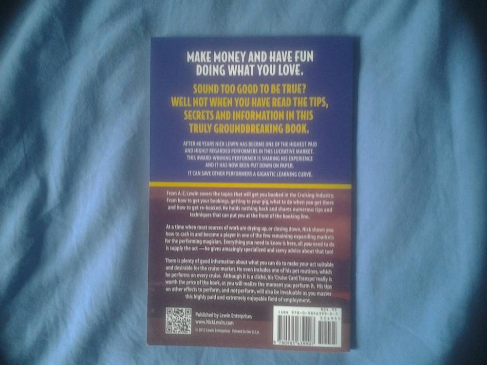 Bonjour a tous, Je vends le livre Cruise magic 101 , how to make a great living performing magic on cruise ships by nick Lewin. Cet excellent livre en anglais vous donnera toutes les clés pour travailler sur un bateau de croisiere, qui contacter, qu'est ce qu'on attend de vous a bord, quel genre de show vous avez besoin... Pour avoir travailler sur ces bateaux je peux vous dire que ce livre est tres complet. 20€ fdpi par paypal (je ne suis pas interessé par un echange)