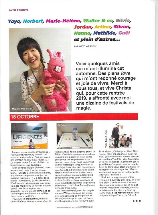 maintenant ça s'appelle MAGICUS MAGAZINE Depuis 2013 J'ai une rubrique dedans, sous le nom de "la vie d'artiste" où je raconte mes aventures professionnelles Voici la page 1 de mon dernier article qui a 3 pages.