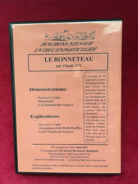 35 € - DVD comme neuf- PORT EN SUIVI COMPRIS (France) - Paiement Paypal ***N'est plus commercialisé par Mayette*** Une video VHS produite par Mayette à peu d'exemplaires. Il s’agit ici de la version dvd, numérisé par Tran de Mayette ➡ Les tours avec explications : Suivez le valet Bonneteau La chainette des Gypsys