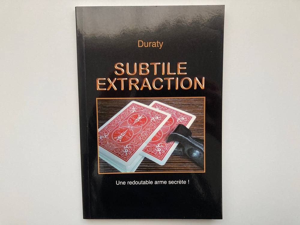 39 € ( Prix Neuf Boutique sans port : RUPTURE DEFINITIVE ) PORT SUIVI COMPRIS via MONDIAL RELAY ( France ) ETAT COMME NEUF ( Pas de pages cornées, pas d’annotations, pas de Stabilo, pas de pages tâchées ) Paiement PayPal En français Il existe de nombreuses méthodes d’empalmage, mais la plupart demandent de l’habileté et un fort détournement d’attention. La technique que Duraty a mise au point est absolument invisible et permet de subtiliser une ou plusieurs cartes sous le nez des spectateurs. Vous la maîtriserez en quelques heures et vous pourrez l’appliquer à de nombreuses routines (quinze routines sont expliquées). ➡ Livre en français, 88 pages, tirage limité. ➡ La lecture de cet ouvrage vous permettra de retrouver l’essence de chaque effet pour mieux provoquer le sentiment de l’impossible. Ce faisant, Guillaume vous livre toutes les clefs pour libérer le public de ses certitudes et en apporter une nouvelle : la magie existe en chacun de nous. ➡ Sommaire La technique de base Voyage éclair de quatre cartes Les cartes à la poche – Version 1 Les cartes à la poche en couleurs Surprise Royale James Bond La carte au nombre Vous allez être étonnés A travers la table D’un paquet à l’autre Les as amnésiques Pérégrinations 2 Volte-face B’Zouave (mentalisme) Translastique Extraction directe Extraction retardée Duplimage (mentalisme) Bibliographie par Pierre Guédin ➡ Les points forts Des effets incroyables et spectaculaires. Une technique secrète aux multiples applications. La solution pour tous ceux qui n’osaient pas utiliser l’empalmage. À la portée de tous grâce aux explications détaillées et illustrées. Pratique pour se débarrasser des cartes spéciales dans les tours de petits paquets. Quinze routines expliquées : des effets nouveaux et des classiques revisités.