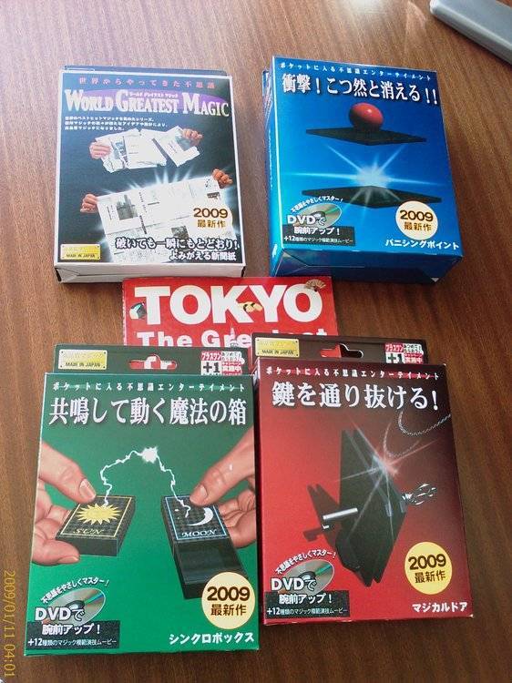 plein d'ironie cachée très drôle... Les Tenyo du magasin de jouet Hakuhinkan ( 8-8-11 Ginza) n'étant que ce qu'ils sont, les vrais magiciens peuvent se fournir chez Magic Land situé près de Kayaba-Cho subway station (Tozai-line or Hibiya-line). Au fait, Matthieu Bich a travaillé avec Tenyo dans mon souvenir...