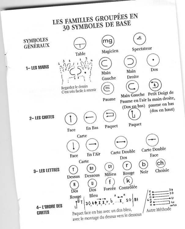 Interessante question...pour ma part j'ai eu beaucoup de mal à comprendre qui allait apprendre un langage particulier qui ne semblait pas parlé par beaucoup de monde. C'est un peu le problème de l'esperanto, c'est génial dans le principe, mais ça ne prend pas et donc cela ne décolle pas.. En fait c'est une sténo, et à par Tamariz je ne sais pas qui publie des tours notés sous cette forme ( et encore, je ne pense pas que TAMARIZ publie en utilisant cette méthose)... Note, il écrit peut-être à une dizaine de copains qui arrive à lire cette "sténo" et échangent danscette forme inconpréhensible au commun des mortels des secrets merveilleux... La méthode est incompatible avec le traitement de texte... donc ça sert pas à grand chose ( prendre des notes dans les conférences, noter rapidement ces idées...) Dans les conf y a des notes et mes idées ne viennent pas si vite que j'ai besoin d'une sténo avec des petits dessins... Quelques magiciens tiennent peut-être leur carnet secret sous cette forme.... Pour la curiosité petit extrait en fichier attaché ( il s'agit d'une citation) -