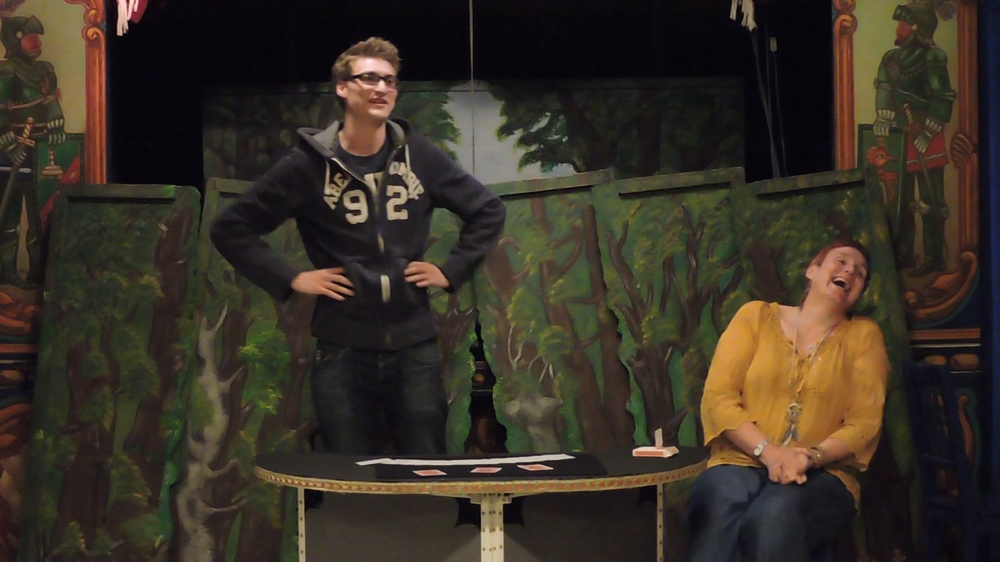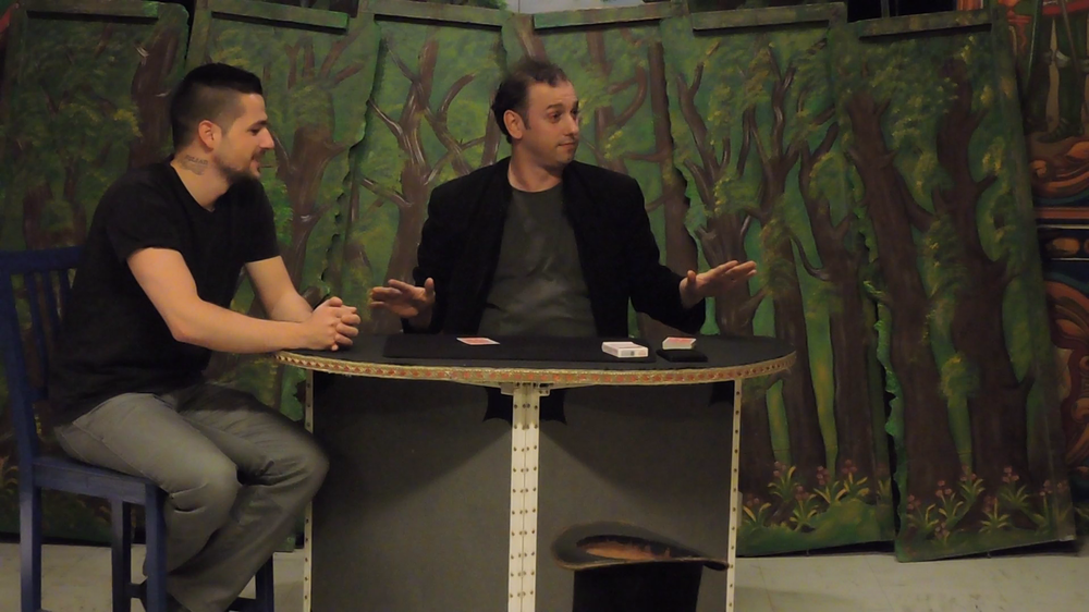 Je présente ce soir là une routine basée sur une idée de Fantomas dans son ouvrage Bizarremania, "Veneficium". Ayant formé des guerriers pour vaincre les dragons qui ont saccagés leurs cités, je leurs fait passer une dernière épreuve afin de savoir s'ils peuvent partir en guerre ou bien rester pour apprendre encore sur quelques sujets.. Pour cela, tous les prétendants ont été formés à la guerre, au corps à corps, la stratégie, au commandement de troupe, au combat contre les dragons géants ... . Ils doivent désormais passer une dernière épreuve: me surprendre comme ils devront surprendre les dragons si ils veulent les vaincre. Après avoir donné quelques pièces d'or à chacun des guerrier je me retourne. Ils doivent choisir chacun un dragon à combattre. Chaque dragon a tué la famille de l'un d'eux. Chaque dragon a des forces plus ou moins grande. Chaque dragon protège un trésors plus ou moins grand. Apres les avoir énumérés les uns après les autres, je me retourne pour les laisser choisir librement. Leurs décisions seront elles guidées par la vengeance ? La facilité ? La soif de l'or ? La seule consigne étant que s'il veulent vaincre leurs dragons, ils doivent déjà commencer par me surprendre, en effet comment vaincre une telle bette si elle peut prévoir chacun de leurs mouvements. Une fois les dragons choisis, ils regardent sous ceux ci, un nombre y est inscrit. Apres quelques calculs ils renversent un coffre sur la table et prennent chacun un nombre de pièce défini par le calcul. Je fais de nouveau face à eux et donne le nom des dragons qui ont été choisit par chacun. Malheureusement ils n'ont su me surprendre ... ils devront rester un an de plus a apprendre l'art de la surprise