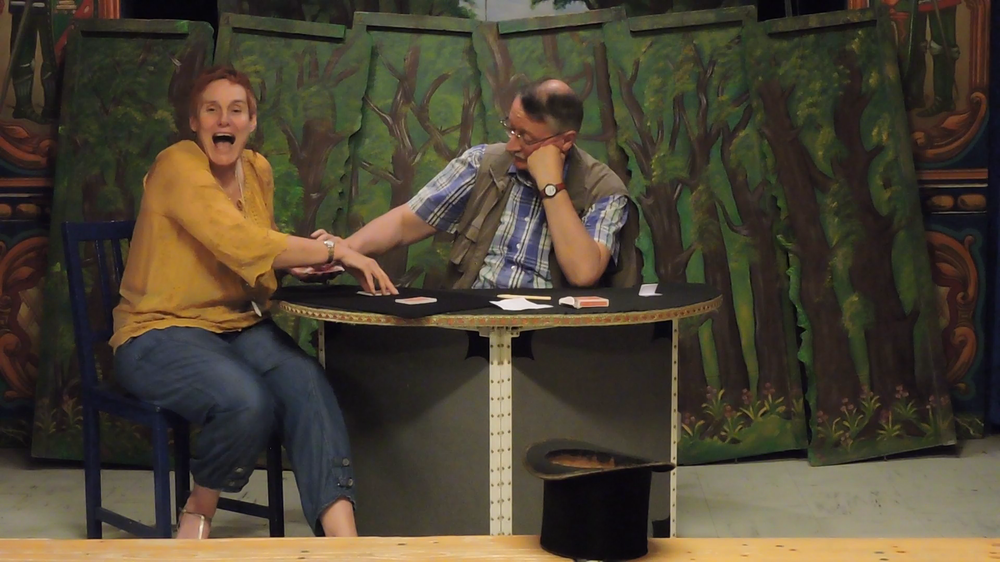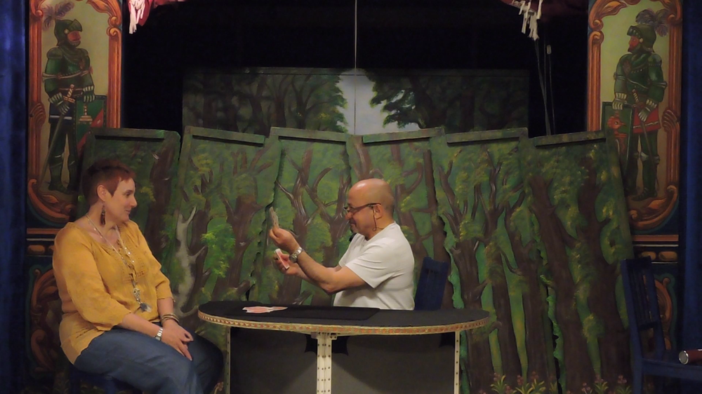 Jean Pierre demande à Corinne de venir le rejoindre pour lui présenter un petit tour de carte. Après avoir mélangé le jeu, Corinne sortira 13 cartes du jeu. Chiffre au combien lié à la superstition. Jean-Pierre note une prédiction sur un papier avant de Corinne ne réalise un ruban avec ses 13 cartes. Elle doit en choisir 3 et va en retourner 2 ou 3 selon son envie. Chaque carte face visible devra être complétée par un nombre de carte pour arriver à 13. Par exemple si une carte face visible est un 3, on doit rajouter 10 cartes dessus. Si une carte est face cachée Corine va alors inventer le numéro qui lui correspond et compléter pour arriver à 13. En additionnant ensuite la valeur des 3 cartes (visible ou cachée), on obtient un nombre, par exemple 24. Nous retournons la 24eme carte qui correspond alors à la prédiction de Jean-Pierre ! Mais ce n’est pas fini. Faisons maintenant deux paquets de 16 cartes quelconques. L’un des paquets revient à Jean-Pierre et l’autre à Corinne. Il lui présente ses cartes et elle doit choisir une des figures qui la compose. Insérant cette figure face en haut dans son propre paquet et retenir la carte juste au-dessus. Après quelques manipulations pour réunir les 2 paquets, Corinne va distribuer les cartes en deux nouveaux paquets. Nous éliminons celui où la figure choisie est absente. Et on recommence jusqu’à ce qu’il reste 2 cartes. La figure choisie ET la carte retenue ! -