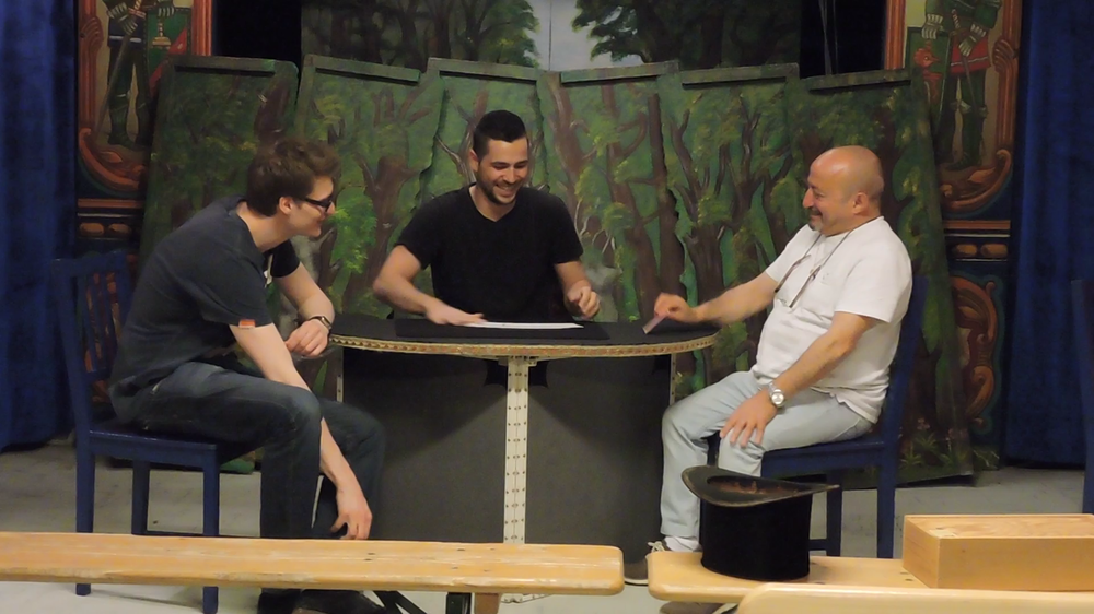 Daniel sera accompagné de Brian, Joseph et Jean-Pierre pour son prochain tour J Joseph va séparer le jeu en 3 parties à peu près égales après avoir mélangé le jeu. Chacun va prendre une portion de jeu et y choisir une carte et la déposer sur la table et déposer le reste du jeu dessus. Chacun va maintenant penser à un nombre secret entre 10 et 15 et va déposer sur la table le nombre carte correspondant au nombre secret. Les portions vont maintenant être interverties entre les spectateurs. Puis nous recommençons la même manœuvre. On interverti de nouveau les jeux et reprenons les mêmes manœuvres. Quelles étaient vos cartes choisies ? Retournez la 1ere carte de vos paquets respectifs !!! Et boummmm !! -