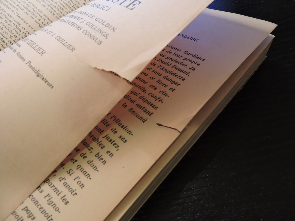 « Mes secrets d'illusionniste » David Devant. Edition 1949. 266 pages. 55€ FDPI Prochain passage en France: Si votre règlement me parvient avant le mardi 21 février je sais le poster en France lors de mon passage le mercredi 22 février 2017 Règlement: Virement, Chèque, Paypal (Paiement à un ami, frais Paypal à votre charge). 61 gravures Préface de Rémi Ceillier Bon état. Déchirure sans manque (3cm) sur la page de titre et la feuille suivante (cf photo). Une feuille plastifiée sur les pages de couvertures mais non scotchées sur les pages, donc très facile à retirer sans abimer l'ouvrage. (Petite déchirure sans manque en haut du 1er plat prêt de l'insertion du dos, sur 0.5cm) On a rien inventé !!! Tout ce qui vous intéresse en prestidigitation se trouve dans les Payots !!! C’est une collection indispensable à tout magicien. Toutes les techniques de bases y sont expliquées en long en large et en travers. Les principes utilisés, les tours récents, ne sont que des principes ou des tours réactualisés à notre époque Principaux titres de la table des matières : Tours de cartes Boules de billard Gobelet et muscades Magie fleurie Tours d’ouvertures Magie mécanique Révélation d’illusions fameuses Encore plus fort L’œuf en magie La corde indienne Mystères magiques Plus magique, plus mystérieux Sketches magiques Chefs d’œuvres magiques Transmission et lectures de pensées Trois illusions inédites Créations d’une illusion Quelques moments gênants Magie de quelques-uns de mes contemporains -