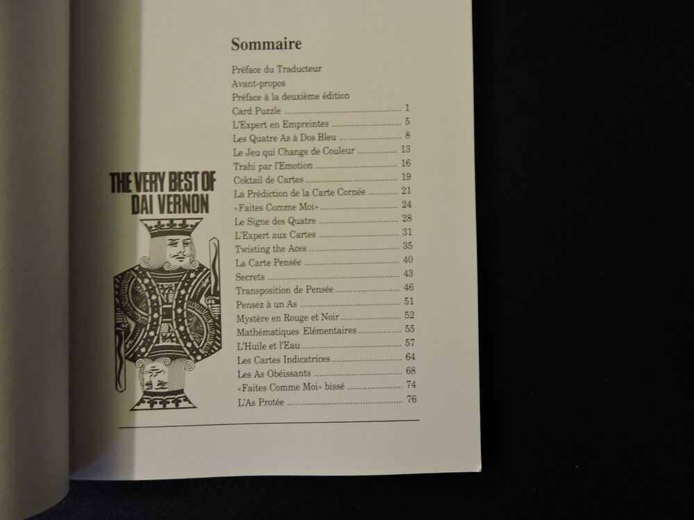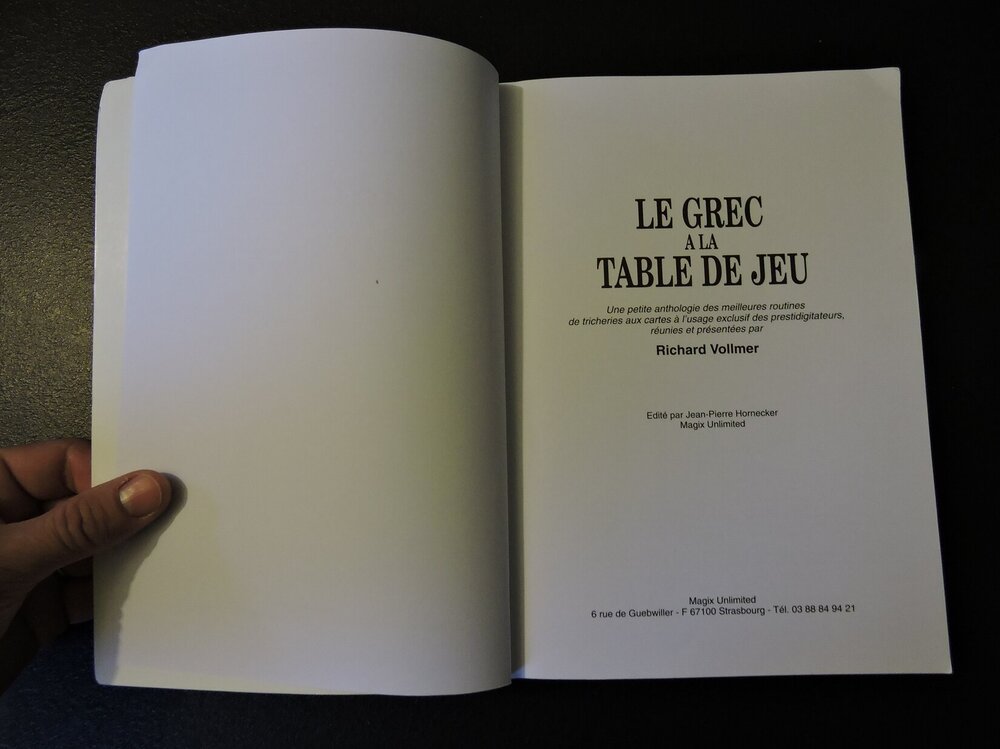 The Very best of Le Grec à la Table de Jeu Les meilleures routines de tricheries aux cartes Richard Vollmer Editions Magix Unlimited 1999 179 pages brochées En tres bon etat 570gr Pour la table des matieres, cf les photos 45€ FDPI en Mondial Relay (Lettre bulles) Paiement Paypal (envoi d'argent à un ami) -