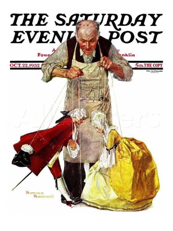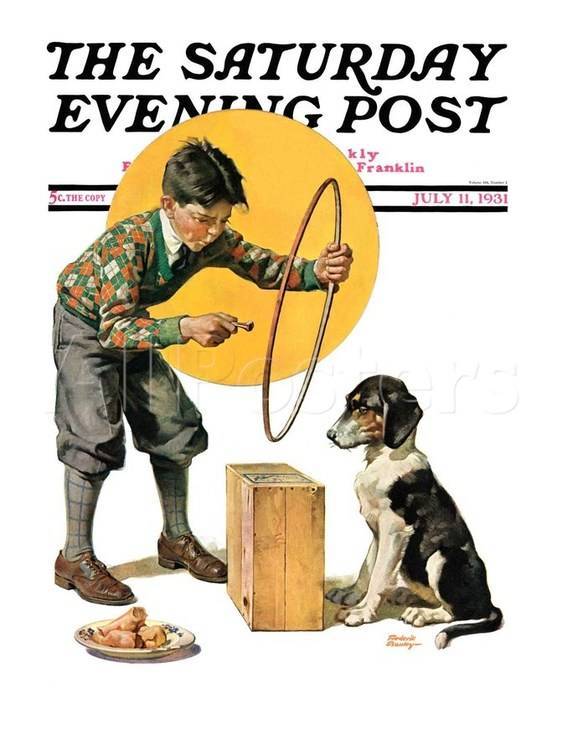 The Saturday Evening Post (22 Mars 1930). Couverture du génialissime Norman Rockwell. "Rien dans la manche". -