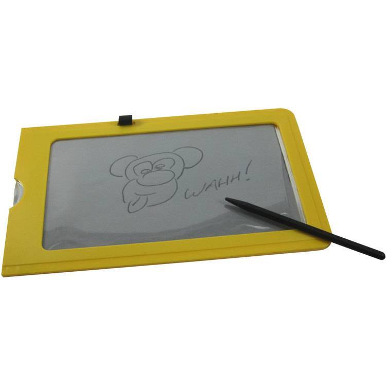 Oui c'est le télécran sur la photo. Sur l'ardoise magique, on écrivait avec un petit stylo plastique. Pour effacer, on tirait l'ardoise qui glissait de son support pour effacer. -