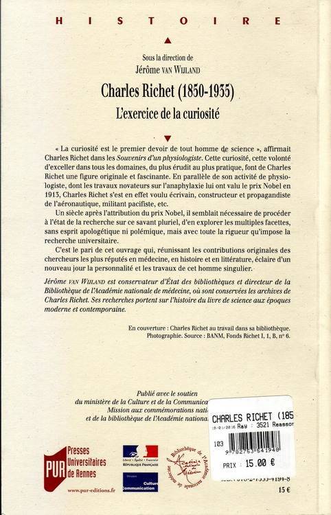 Charles Richet était un grand savant de son époque qui a obtenu un prix Nobel. Si vous avez lu des livres sur les phénomènes paranormaux, le nom de Charles Richet doit vous dire forcément quelquechose car il s'est intéressé au sujet en son temps. Le livre qui vient de paraitre sur cet homme des science permet de revenir sur la vie de cet homme et surtout sur sa contribution à la science. Un chapitre ("Charles Richet au seuil du mystère") est aussi consacré à son travail sur les phénomènes paranormaux. -