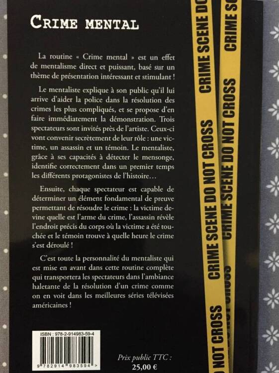 Hello, Je vends le livret "Crime Mental" Par Harrismatic (CC éditions), en parfait état. D'après le site de l'éditeur : Prix : 15€ - Les frais de port sont à ma charge pour la France Métropolitaine. W.