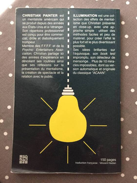 Hello, Je vends le livre "Illumination" de Christian Painter (en Français, traduction de Vincent Hedan). En bon état. Prix : 19€. Les frais de port sont à ma charge pour la France Métropolitaine. W.