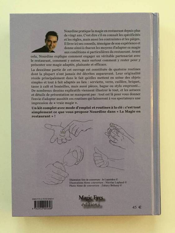 Hello, Je vends le livre "La magie en restaurant" de Nourdine, écrit en collaboration avec Ivan Laplaud (préface de Jean Faré - Table des matières sur demande). Prix : 25€. Les frais de port sont à ma charge pour la France Métropolitaine