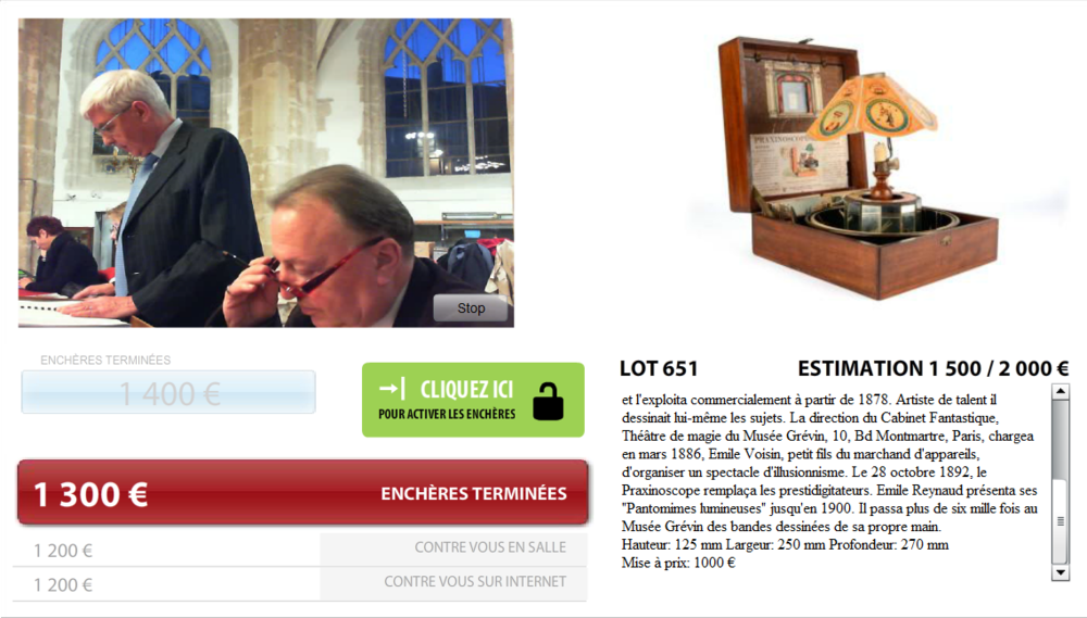 ... Quelques belles autres ventes. L'avant dernière photo (automate) n'a pas trouvé preneur (mise à prix 6 000 euros). Quant à la dernière photo : c 'était la dernière pièce de la collection de Morax et qui a trouvé preneur à 1 500 euros. La vente avait commencé ce matin vers 9 h 30 pour se terminer vers 20 h (avec une pause déjeuner). On reconnaît sur les photos, au premier plan, Hjalmar qui fut l'expert pour cette vente. Quant à la vente, elle fut conduite par Maître Jean-Pierre Lelièvre. Bravo à tous ! -