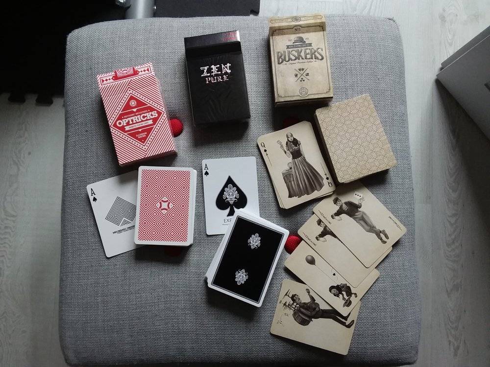 5. Bonjour à tous, Je vend le lot suivant composé des jeux de cartes : - Jeu de cartes Mechanic Optricks (rouge) - Jeu de cartes Busker Vintage - Jeu de cartes Pure Zen Les jeux sont neufs, juste ouverts Prix : 25 euros FDPI pour la France