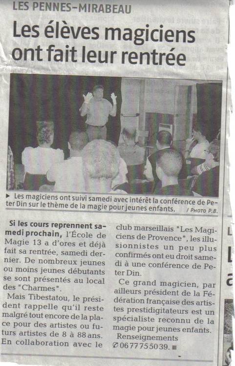 La salle occupée habituellement par les ateliers de magie des Magiciens Pennois est pleine. En effet les Magiciens de Provence organisaient, en partenariat avec l’école de magie 13 qui s’occupait de l’accueil, la venue du président de la FFAP : Peter DIN pour une conférence.