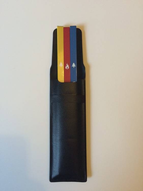 Le magicien donne au spectateur un jeu de trois bâtonnets sur chacun desquels sont dessinés des symboles. Le magicien tourne le dos au spectateur qui choisi secrètement un symbole et aligne les bâtonnets de manière à placer côte à côte les dessins identiques qu'il à choisi. Puis il mélange les bâtonnets et les cache dans son poing. Pourtant, à peine le magicien s'est-il retourné qu'il est capable de nommer le dessin choisi. Notice en Français et en Anglais. 50€ frais de port inclus état neuf.