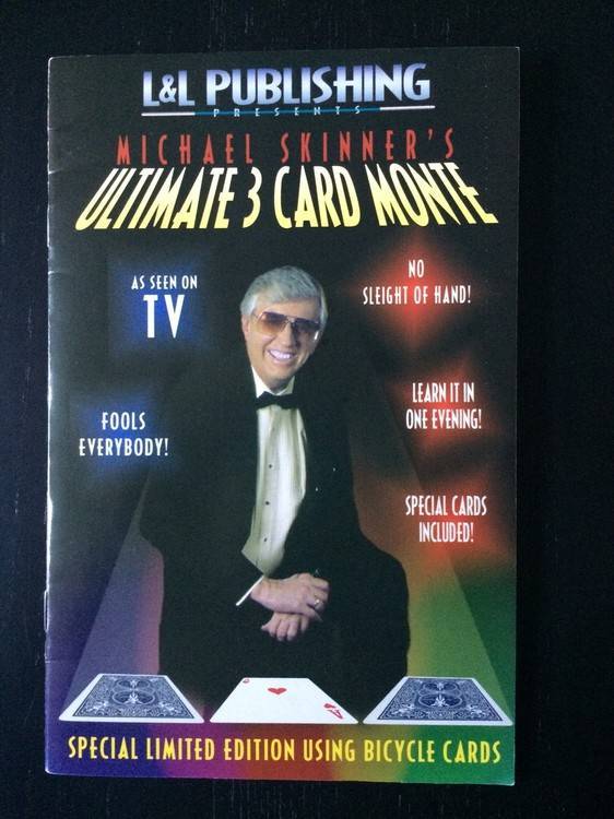 Twisted Sisters 2.0 (DVD and Gimmick) Bicycle Back Vous déposez face à vous deux paquets de 4 cartes, l'un est à tarots rouges, l'autre à tarots bleus. Vous invitez un spectateur à choisir un paquet, supposons qu'il choisisse le paquet à tarot rouge. Vous attribuez donc le paquet à tarots bleus à un second spectateur. Vous demandez au premier spectateur de penser à l'une des 4 dames et de ne dire que la couleur de la dame qu'il a choisie, afin que le second pense lui aussi à une dame, mais de l'autre couleur. Vous affirmez alors que vous aviez retourné une carte, une dame dans chacun des paquets. Ce n'est qu'après cette affirmation que les spectateurs nomment la dame à laquelle ils pensent. Vous éventaillez alors les cartes des 2 paquets et effectivement, une seule carte est face en l'air dans chaque paquet ! la dame nommée par le spectateur !!! Les spectateurs sont déjà bouche bée et pourtant ce n'est pas tout... Sur votre lancée, vous affirmez que les dames ne se sont pas seulement retournées, mais qu'elles ont voyagé ! Elles ont changé de paquet. Pour le prouver, vous retournez les 2 dames : dans le paquet bleu, la dame a un tarot rouge et dans le paquet rouge, elle a un tarot bleu !!! Ayant percé la pensée des 2 spectateurs, vous aviez prévu les dames qu'ils allaient nommer, c'est pourquoi les 3 autres cartes de chaque paquet ne sont pas les 3 autres dames, mais des jokers !!! 3 Card Monte Card (blue) Ce tour se décompose en 4 phases: 1) Le magicien sort 3 cartes : 2 noires et 1 rouge. La carte rouge est placée entre les deux noires. Il les éventaille à nouveau, laissant voir la carte rouge au centre. Le magicien pose les cartes dans l'ordre noir, rouge, noir. Il demande au spectateur où se trouve la rouge, ce dernier répond au milieu. Le magicien retourne la carte du milieu c'est le 3 de trèfle, à droite c'est de 2 de trèfle l'as de coeur était à gauche. 2) Le magicien reprend les cartes comme pour la première phase, et les poses de façon identique l'as de coeur au milieu. Il intervertit les cartes se trouvant aux extrémités (3 de trèfle et 2 de trèfle) et demande où est l'as de coeur. Le spectateur répond au milieu et non il était à gauche!! 3) Les cartes sont reprises avec la rouge entre les noires, cette fois si toutes les cartes sont montrées au public avant d'être disposées sur la table : 3 de trèfle, as de coeur et 2 de trèfle. Il demande où est l'as de coeur on répond au milieu et non il est toujours et encore à gauche!!! 4) Les cartes sont toujours dans la même position de départ, pour faciliter la tâche au spectateur le magicien retire une carte noire et la place à l'écart. Reste en main et visibles une rouge et une noire qu'il retourne face en bas, mélange un peu et pose face en bas, et les poses l'une à côté de l'autre. Le magicien demande au spectateur où est la rouge. Peu importe la réponse lorsque les cartes sont retournées, il y a 2 noires, la rouge est celle qui se trouve à l'écart. Demande un minimum de travail au niveau de l’enchaînement sans difficulté majeure Voici l'un des tours préférés de Michael Skinner. Cette affirmation est quelque peu téméraire si l'on sait que NI. Skinner est considéré par l'élite des magiciens comme l'un des meilleurs au monde. Il a le sentiment qu'il s'agit - et de loin - du meilleur tour utilisant trois cartes qui ait jamais été inventé. Quoi qu'il en soit, c'est certainement le meilleur bonneteau jamais créé. Il le présente tous les soirs au casino du Golden Nugget à Las Vegas depuis quinze ans. L'effet a un impact incroyable sur les spectateurs : il n'y a absolument aucune explication pour ce qui se passe. Les cartes sont maniées avec un tel naturel que l'idée qu'elles pourraient être truquées ne leur vient jamais à l'esprit. Et pourtant, toute la routine repose bel et bien sur l'emploi de cartes truquées. La routine de Michael est fondée sur une routine d'Eddy Taytelbaum intitulée « Find the Ace », décrite clans le livre de Dai Vernon Ultimate Secrets of Card Magie, p. 216. Michael avait le sentiment que la routine de Taytelbaum péchait par quelques uns de ses aspects, ce qui l'a incité à élaborer sa propre version. Ce que vous allez lire est un chef-d'oeuvre issu du cerveau d'un grand maître. Le déroulement de la routine est facile à apprendre. Sa description vous paraîtra peut-être longue, mais c'est parce que nous ne voulions laisser aucun détail dans l'ombre, afin qu'elle puisse être assimilée par toits, quel que soit votre habileté avec les cartes. Sa présentation ne demande que quelques minutes. Quelques essais en public vous donneront assez de confiance en vous-même pour que vous ajoutiez aussitôt cette routine à votre répertoire.