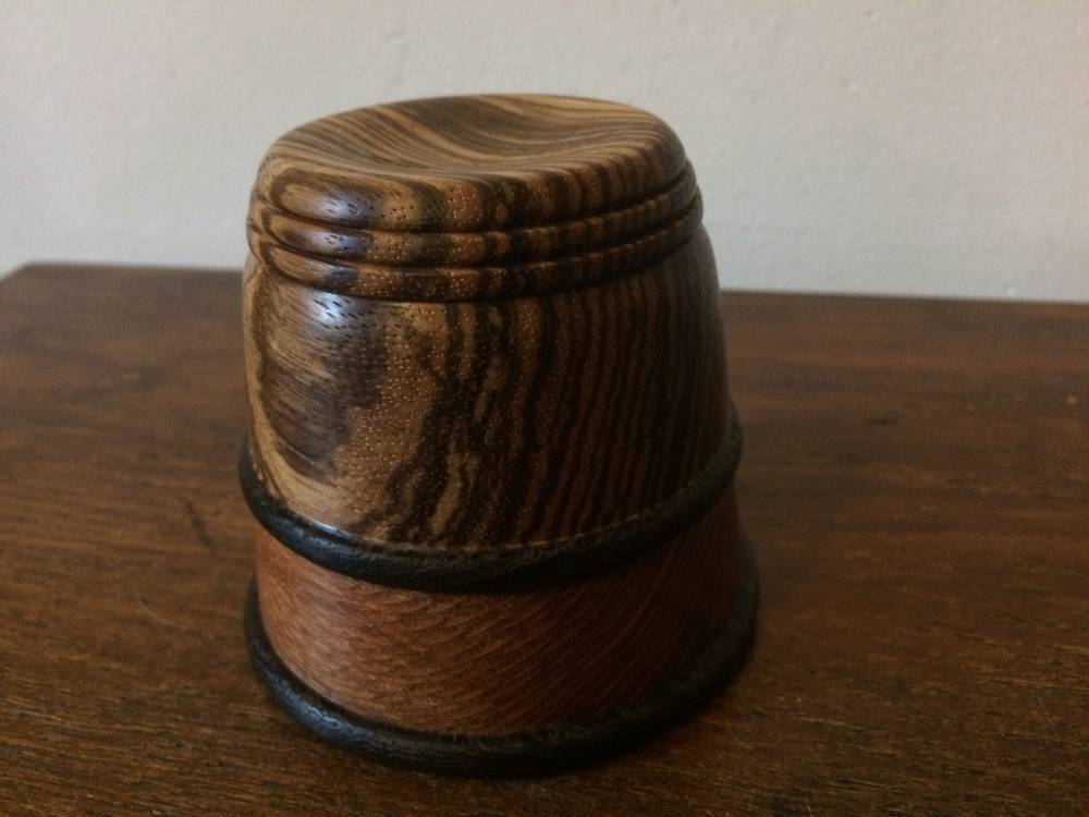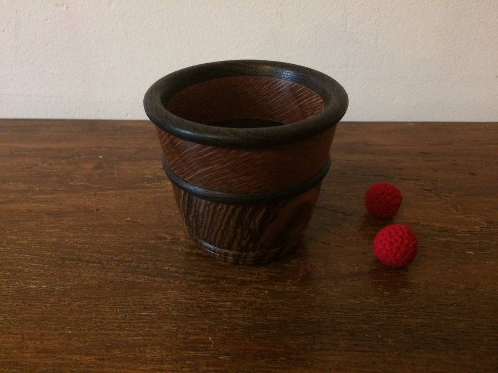 Chop cup en bois fait à la main par Eric Hansen. Vendu avec deux muscades. Taille 9 cm Neuf, 85 euros frais de port inclus.