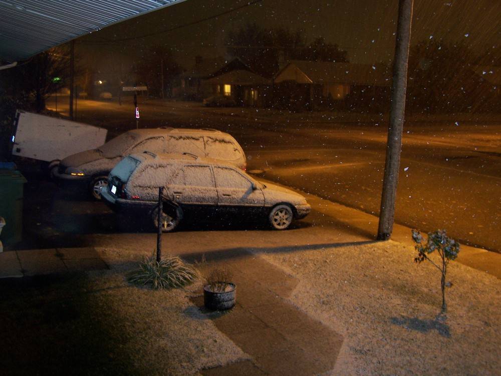 18h25 je suis devant mon ordi a lire différents post quand un cri de joie provenant de mes enfants, m'interpèle. Je me dirige donc devant la fenêtre ( de la maison ) pour y constater ceci....(voir pièce jointe). La neige est déjà là. Je suis conscient que la tonte de pelouse est fini mais merd... je me serai passer de cela. J'ai des spectacles demain et pas de pheus d'hiver. -