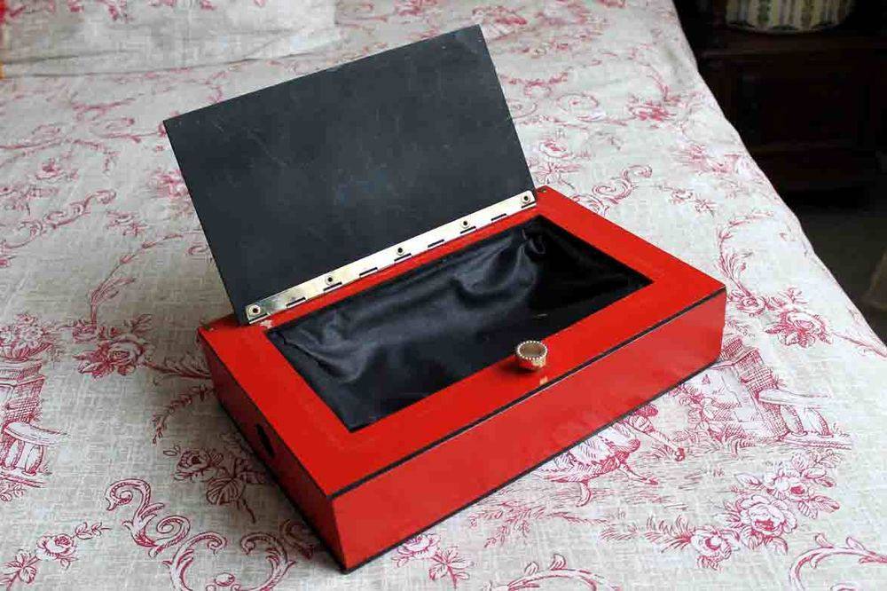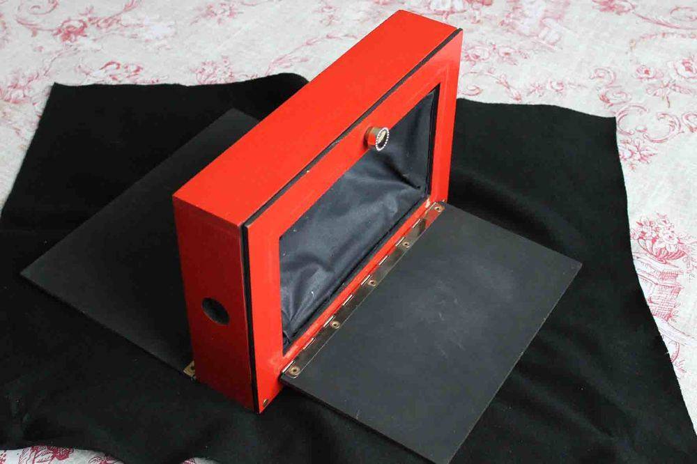 Fabriqué en bois aspect antique, dimensions 23,5 cm x 16,5 cm et 21 cm de haut, démontable pour faciliter son transport.