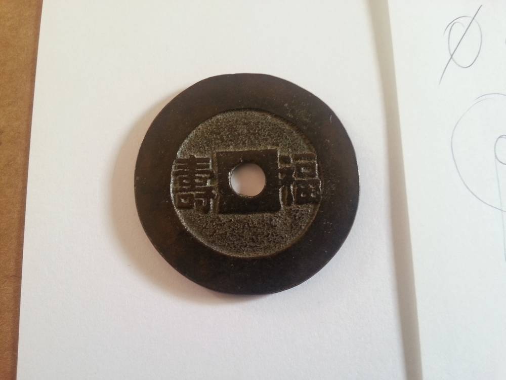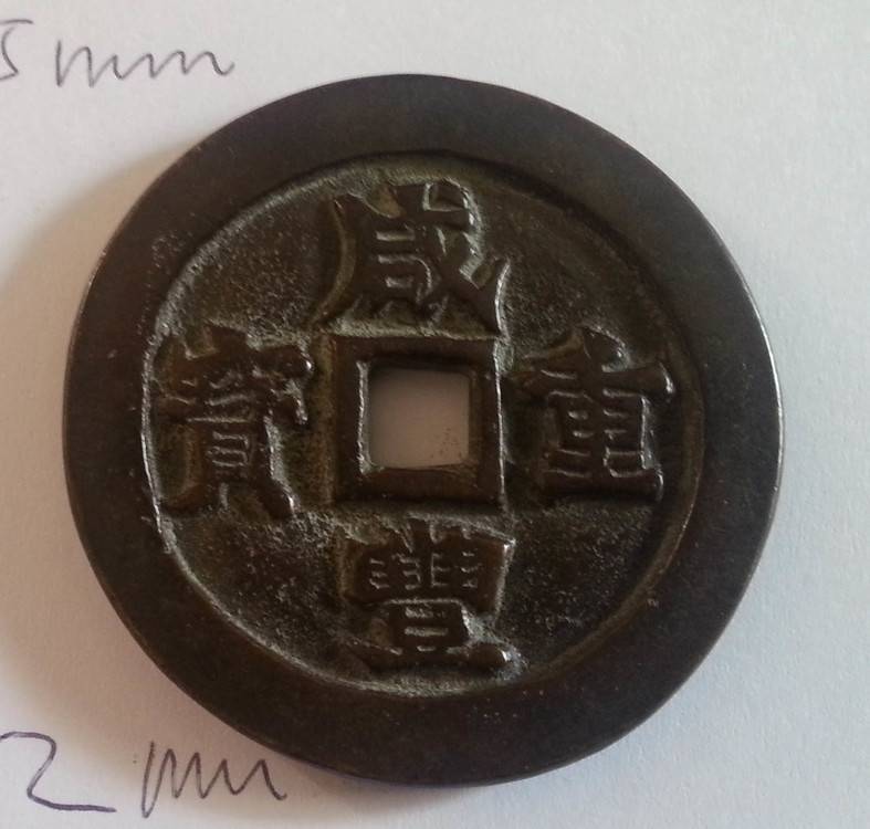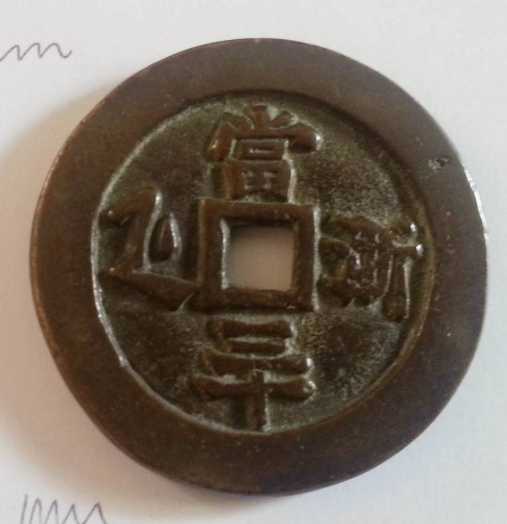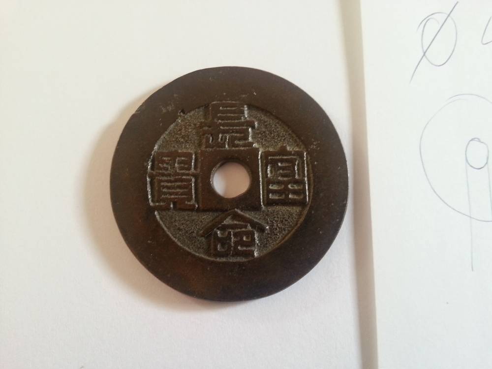 J'ai quelques pièces chinoises anciennes qui dorment au fond de mon placard, si elles peuvent avoir une vie entre vos mains... #1- CONFORT (inscription au recto) Diamètre: 43.22mm Epaisseur: 2.39mm Trou central: 6.50mm (rond) Poids: 21.55g Photos (d'autres si besoin, sur simple demande en MP avec votre adresse email) Prix: 35€ Fdpi lettre suivie en France, paypal uniquement. -