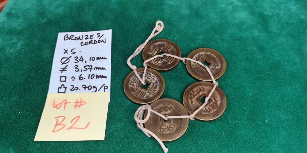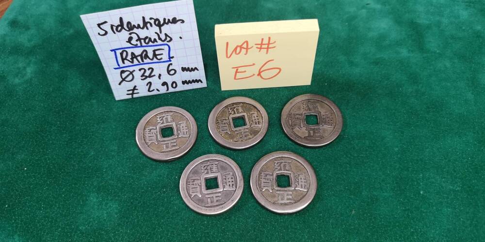 Bonjour, Je me sépare d'une partie de mon matos, tout est en excellent état, vendu à bon prix. Regroupez vos achats avec mes différentes ventes Une série de pièces chinoises anciennes achetées lors de mes nombreux voyages en Chine sur des marchés aux antiquités entre Pékin, Shanghaï et d'autres villes... Ce ne sont pas des pièces que vous trouverez en magasin de Magie traditionnel, elles apporteront une touche d'authenticité dans vos routines. Il est très rare de trouver des "sets" de pièces identiques - ou très similaires. Prix de vente : 25€ Règlement par Paypal uniquement ou remise en mains propres sur Paris, ou banlieue Est (RER A - Marne la Vallée) - je sors peu, donc privilégiez les envois, et de préférence par Mondial Relay, Relai Colis, ou Shop2Shop, Pickup... (trop de pertes ou de vols à La Poste).