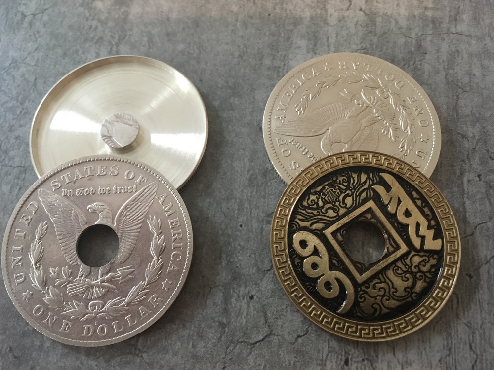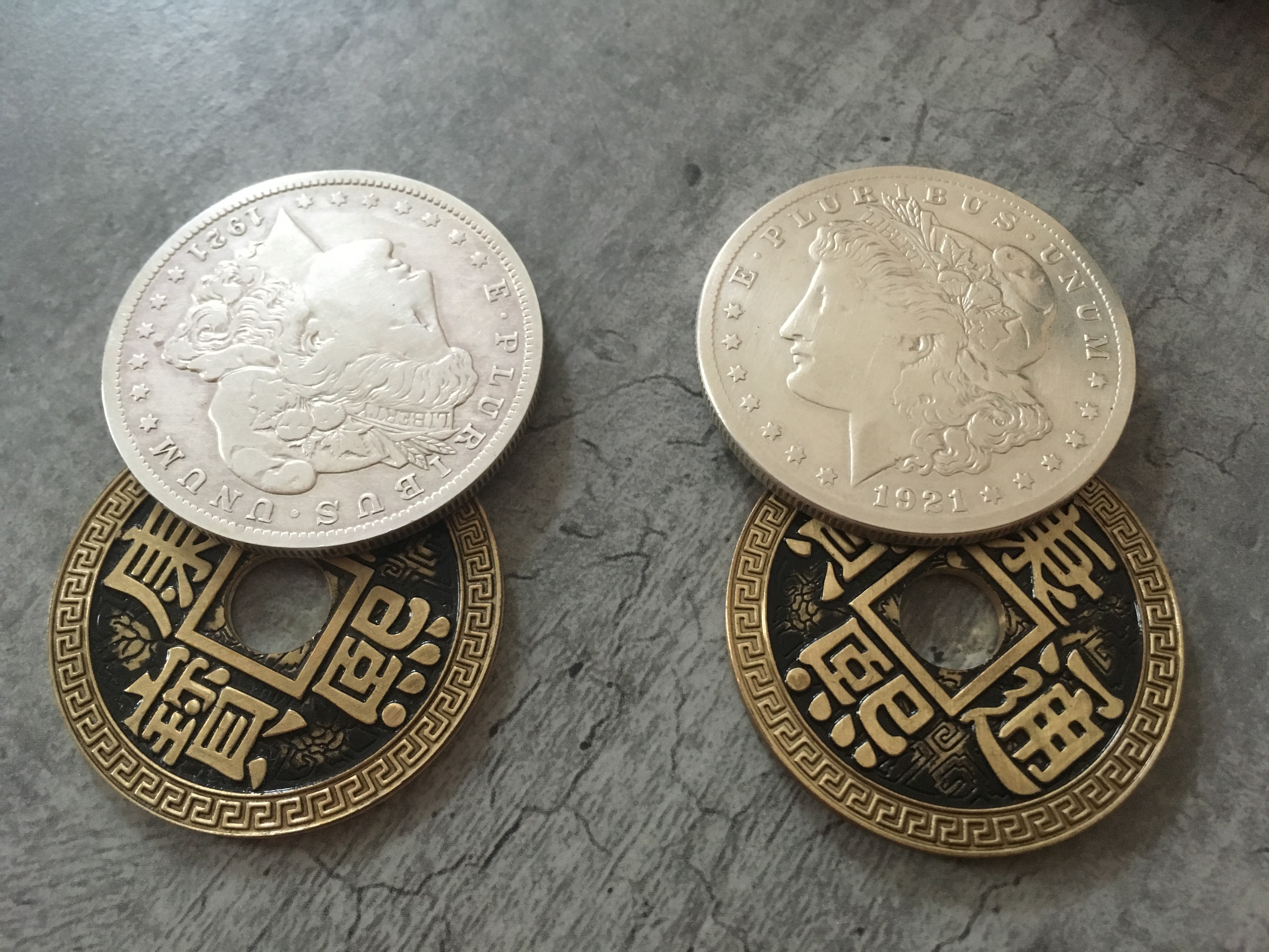 Cherche ce modèle de pièce chinoise telles que proposées par Ludo de la boutique Marchand de Trucs. Taille Dollar.