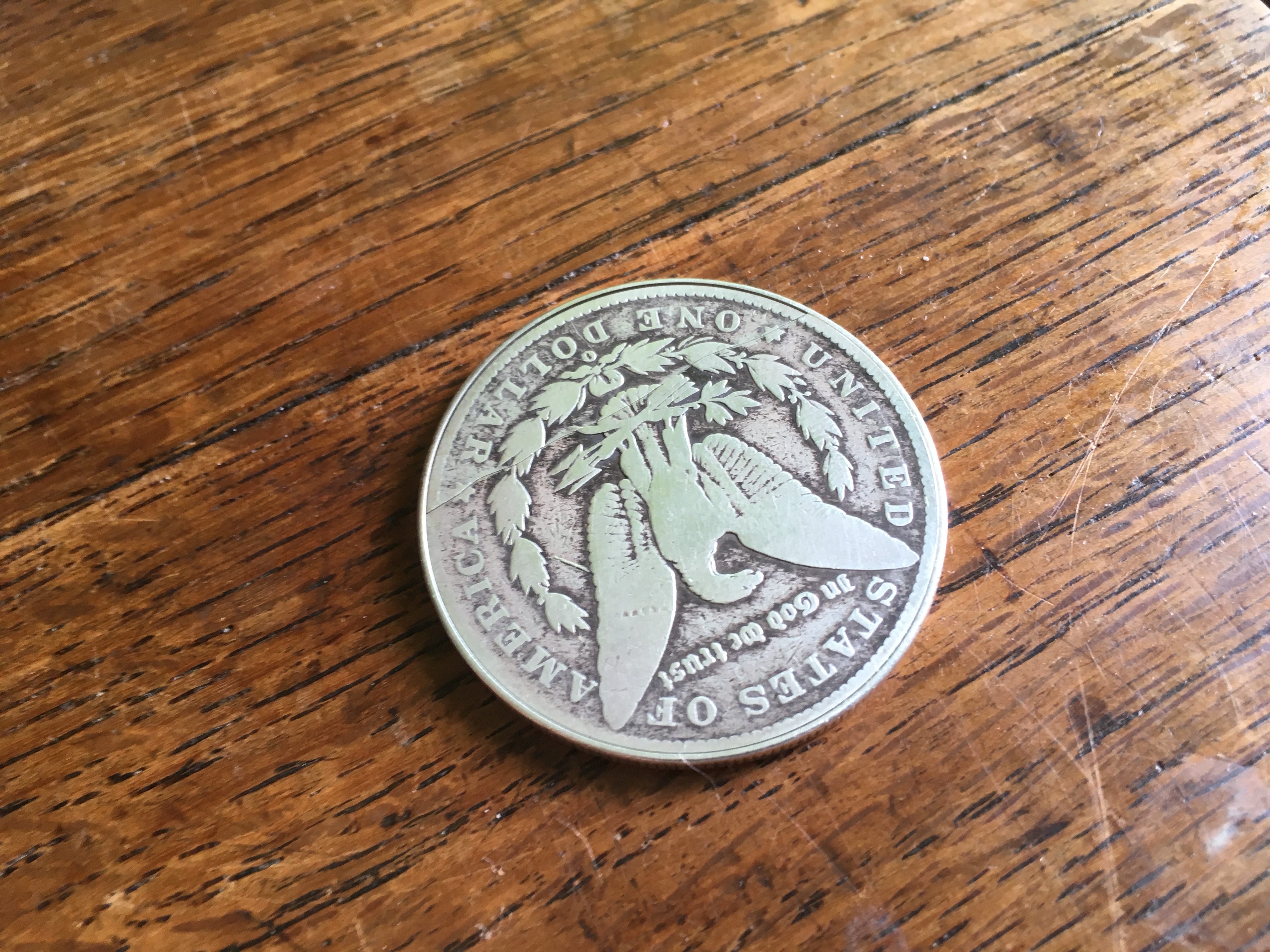 Bonjour, Je vends le set Triception en dollar morgan soft. Strictement la même unité qu'un OxF de Schoolcraft, avec un aimant légèrement plus puissant (donc une libération différente) et une flipper fabriquee par Swadling himself. La routine Oxy Clean de Eric Jones est réalisable en adaptant quelques passes. Composition du set : -Un dollar morgan aimanté. -Une flipper NGF de Swadling avec insert métallique (même comportement qu'une gravity flipper, avec un fil invisible/extensible increvable qui remplace l'élastique standard, le point faible de ce gimmick). Cette flipper est construite différemment d'une schoolcraft ou lassen. La maintenance est presque inexistante. -Une coquille morgan aimantée et teflonée Les complexes [coquille + flipper] et [coquille + dollar aimanté] se comportent comme une seule piece : vous pouvez effectuer un coin roll et un lancé en toute sécurité. Fabrication Bob Swadling, l'inventeur de la flipper. Etat nickel. Jamais tombé. Qualité irréprochable, la flipper est une merveille. Patine faite maison. Prix : 340€ FDPI