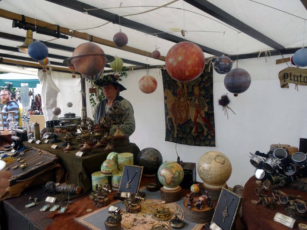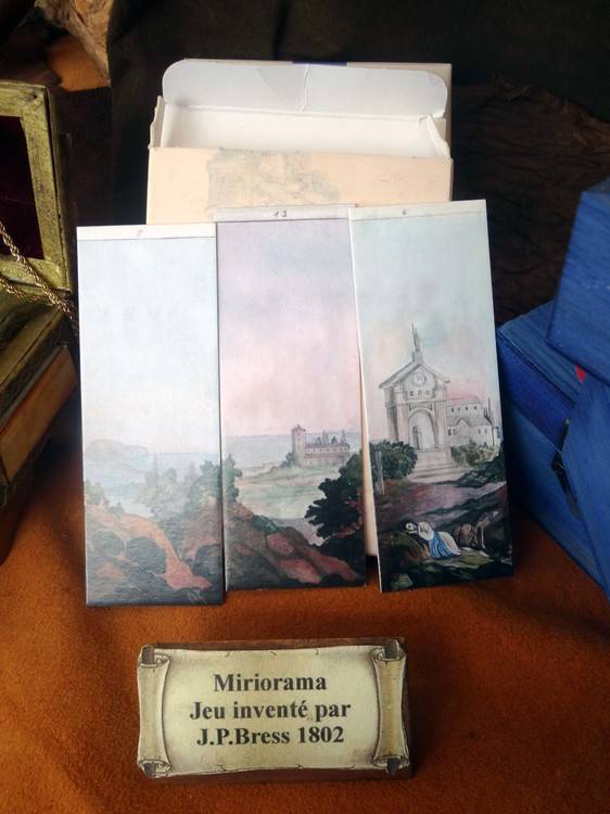 J'ai été la semaine dernière aux 33èmes médiévales de Provins; un stand a attiré mon attention, celui de "Pluto Pluton". J'ai discuté avec la responsable: très sympa et fort érudite dans son domaine. Y étaient présentés beaucoup de reproductions d'instruments anciens pour l'orientation (de jour et de nuit), la mesure du temps (bague d'Aliénor d'Aquitaine: celle-ci follement éprise d'Henri Plantagenet, lui offre une bague solaire afin qu'il soit à l'heure à leurs rendez-vous galants), de la température (thermomètre de Galilée) et de la pression atmosphérique (baromètre de Goethe), des radiomètres de Crookes... J'y ai aussi découvert un jeu de cartes que je ne connaissais pas, le "Miriorama" (ou plutôt "Myriorama"): les cartes mises les unes à côté des autres forment un paysage cohérent quelque soit l'ordre dans lequel elles sont disposées. Des idées d'utilisation en magie ? Je vous laisse cogiter...