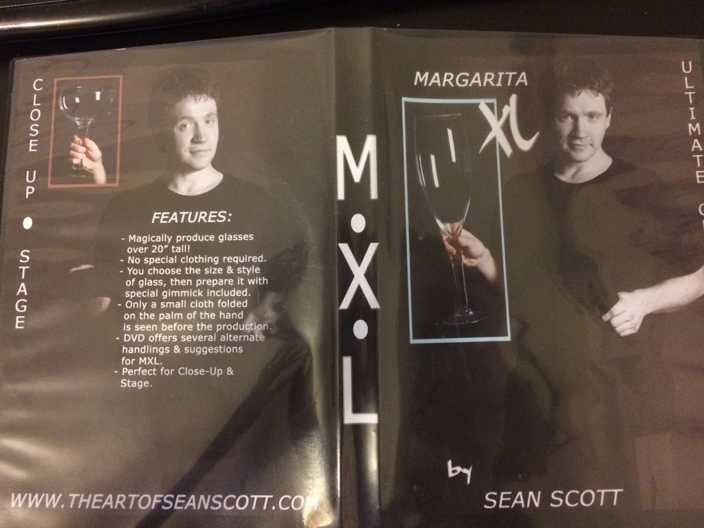 Bonjour, Je me sépare du DVD Margarita XL (ou MXL) par Sean Scott. Ce DVD explique comment produite un verre de très grande taille (50 cm) sur scène et en close-up. DVD en bon état. Prix : 7€, frais de port (depuis la Belgique) exclus Prix neuf : env. 26$ sur Penguin Magic