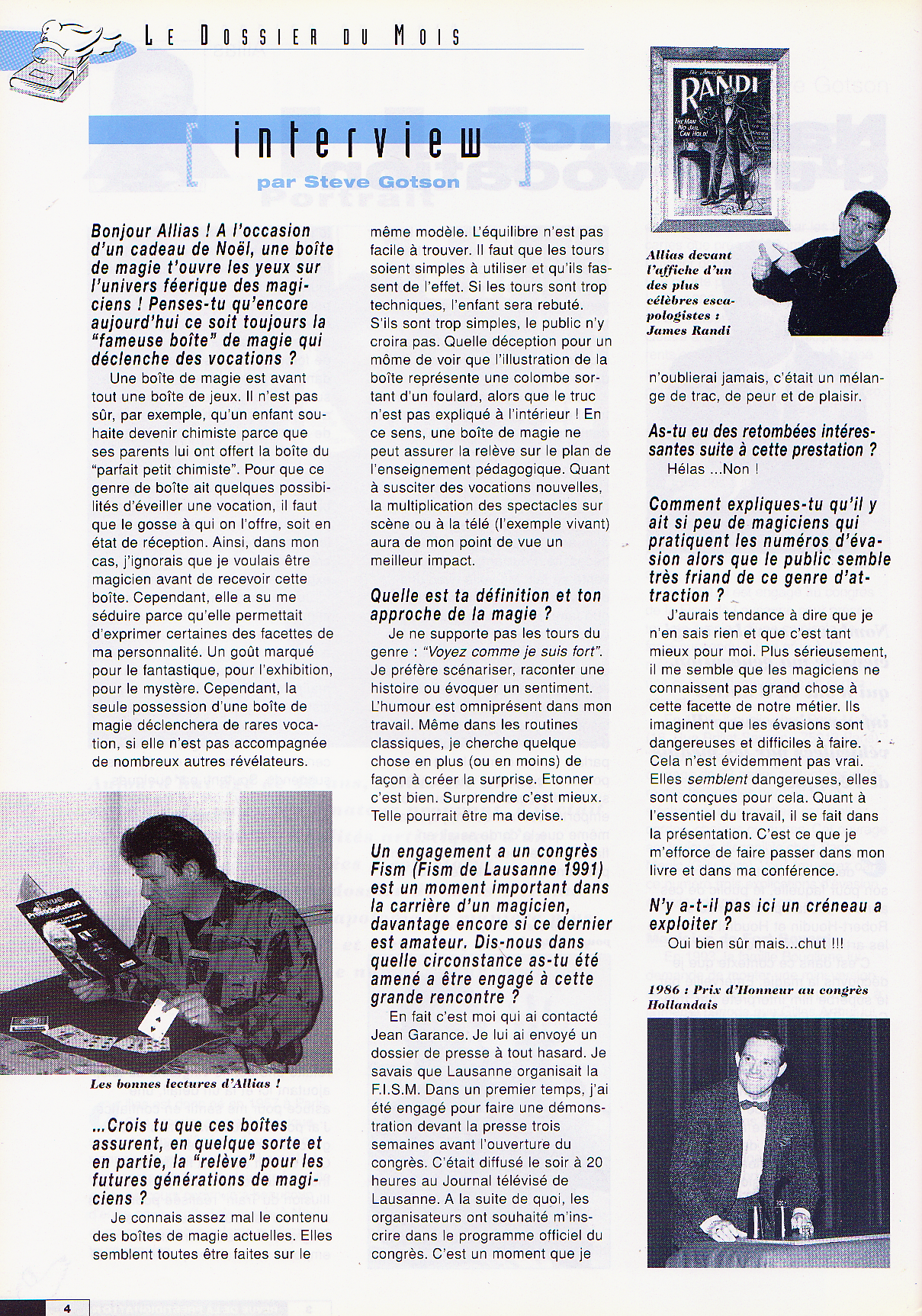 Le rédacteur en chef de l’époque, Steve GOTSON, a souhaité lui rendre hommage en nous autorisant à publier son interview et deux tours de magie.