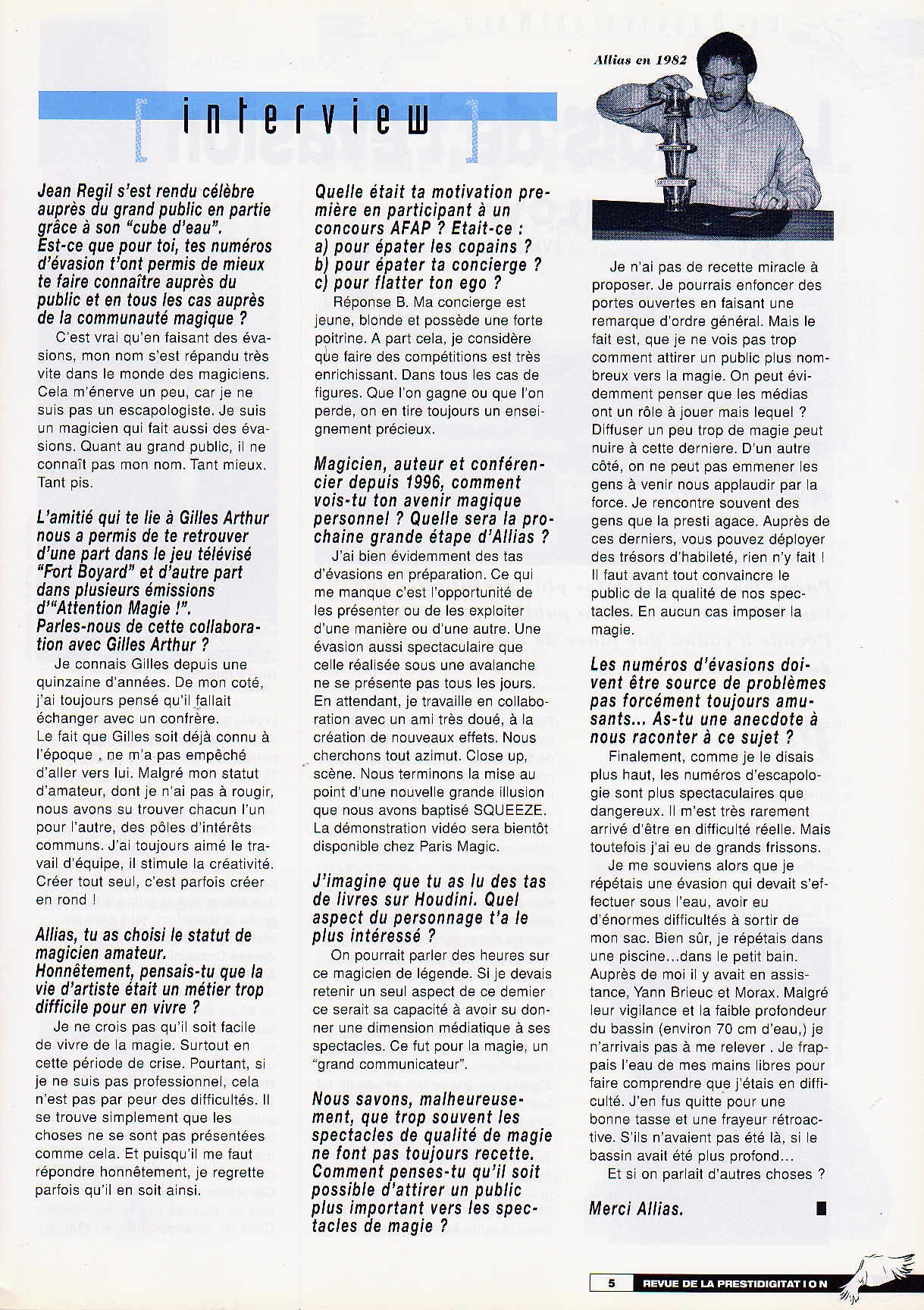 La Revue de la Prestidigitation, le journal de l’AFAP, l’avait mis à l’honneur en juin 1997 dans le numéro 493.