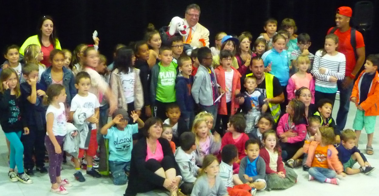 Belle entrée en matière, pour un spectacle qui est basé sur l’interaction entre le personnage et les enfants. Il me faudra généralement plus de 5 à 10 minutes pour arriver à «dégeler» le public et à obtenir les premiers échanges qui seront rythmés, bien entendu, par les « chut » ou les « gros yeux » intempestifs des accompagnateurs.