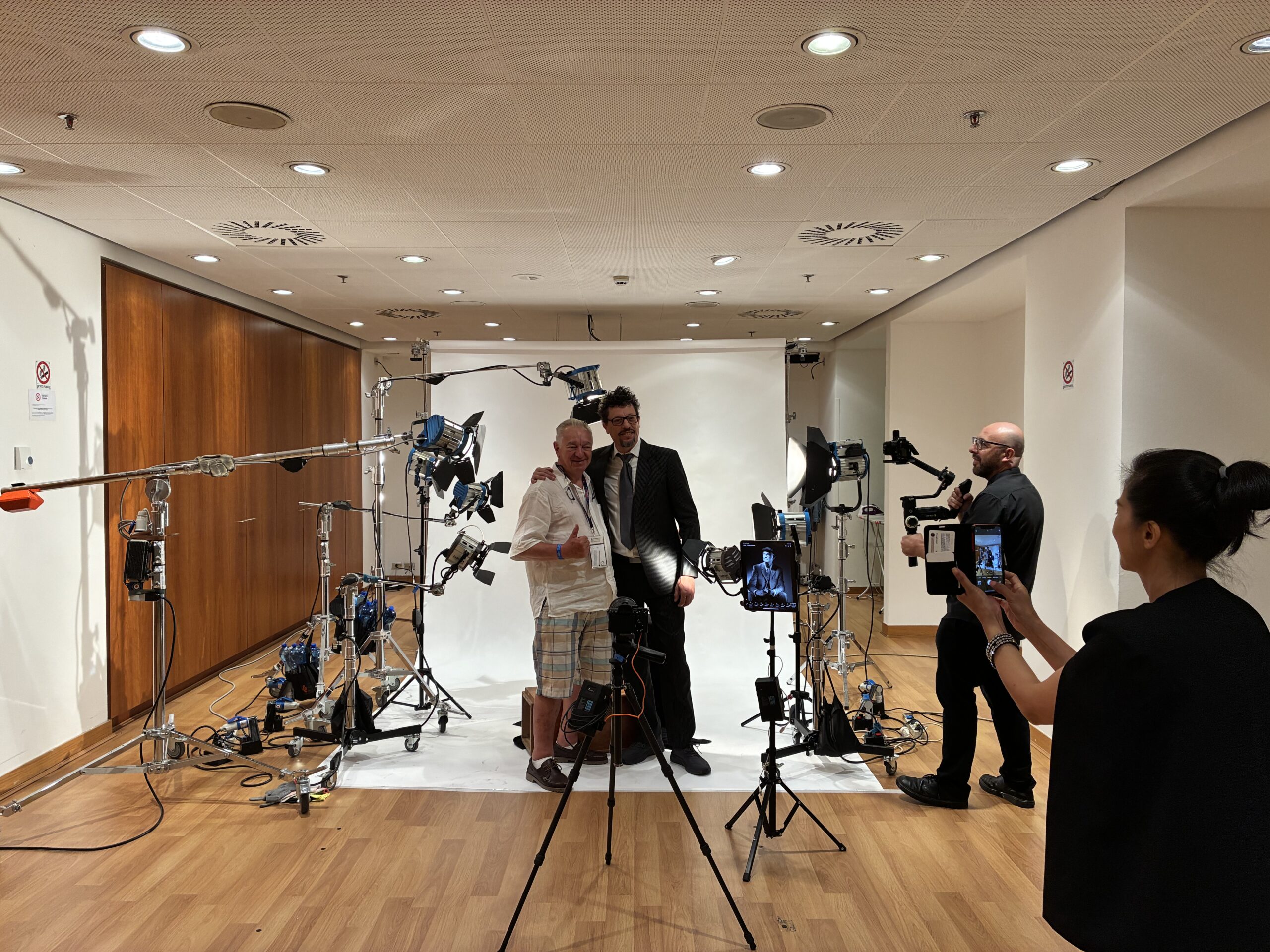 Nous sommes à seulement cent mètres du centre de congrès depuis notre hôtel. C’est un parcours du combattant, car tous les deux mètres, quelqu’un veut un selfie avec nous — c’est flatteur.