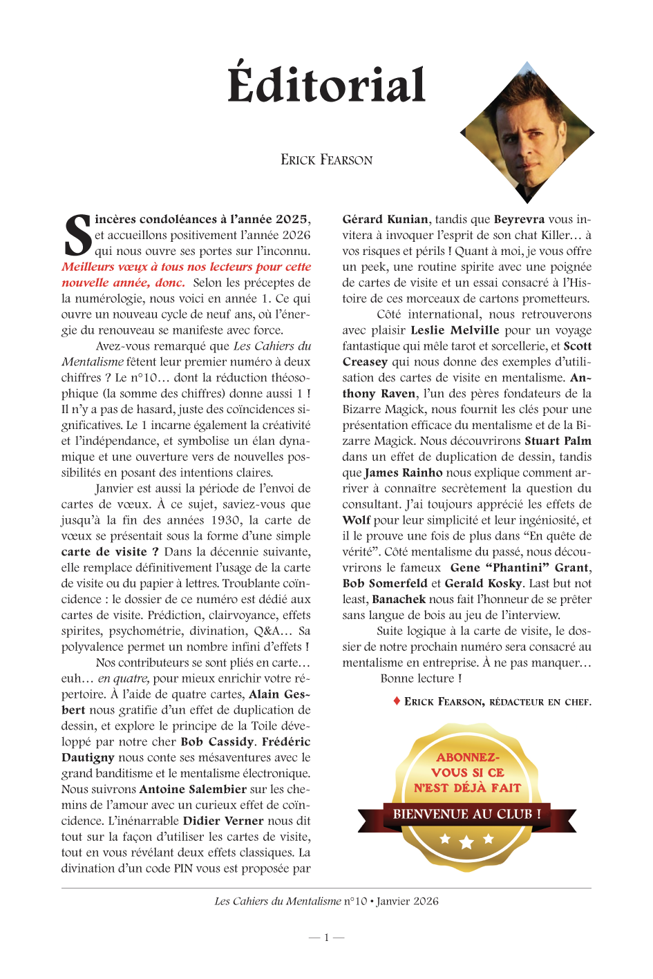 Une revue unique en son genre à laquelle contribuent les meilleurs mentalistes, tous pays confondus.